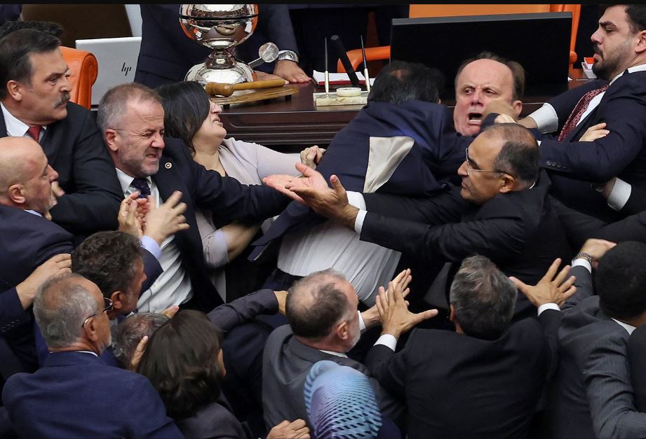 نشبت مشاجرة في البرلمان التركي في 16 آب عندما اشتبك سياسي من الحزب الحاكم مع سياسي معارض بعد أن طالب بالسماح لزميل له مسجون بالجلوس على مقعده.