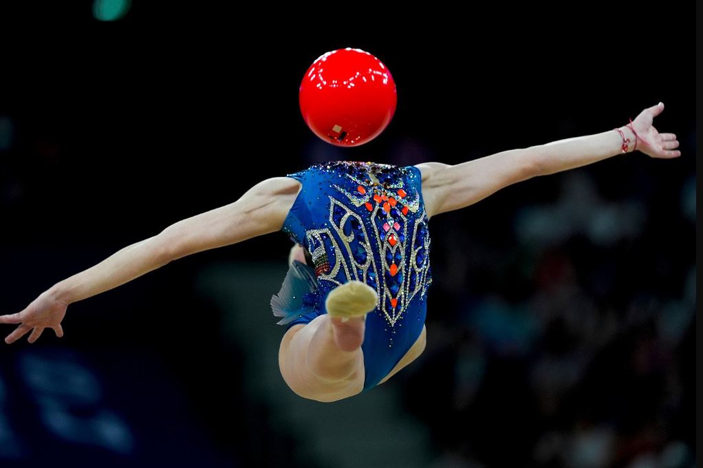 خلال إحدى جولات التصفيات في أولمبياد باريس، لاعبة جمباز بلغارية تحاول إبهار الحكام.