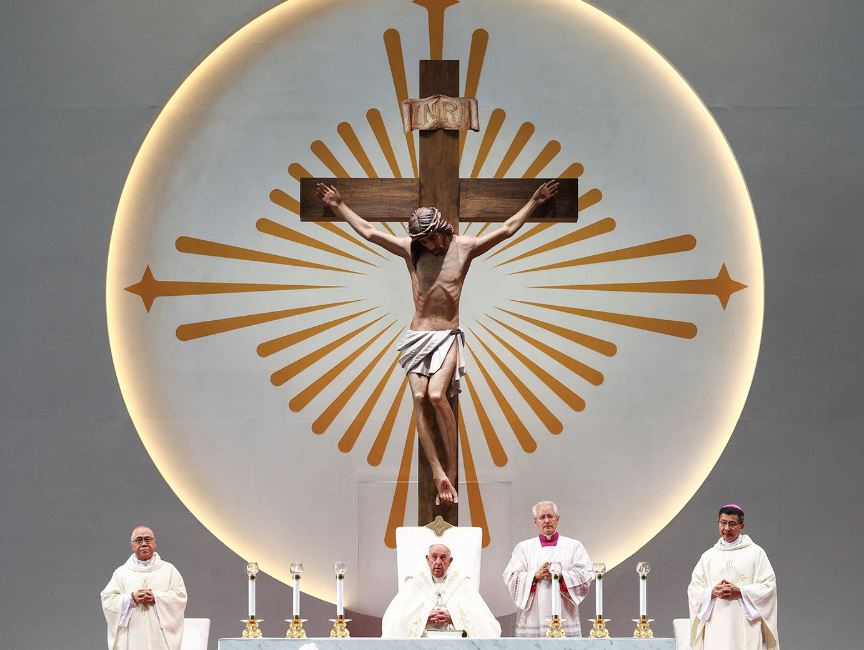 البابا فرنسيس يحتفل بقداس في سنغافورة بحضور 50 ألف كاثوليكي. كانت هذه هي المحطة الأخيرة في جولته التي استمرت 12 يوماً في آسيا والمحيط الهادئ، وهي أطول رحلة دولية للبابا البالغ من العمر 87 عاماً آنذاك.