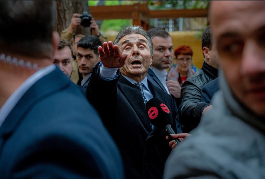 بيدزينا إيفانيشفيلي، مؤسس حزب "الحلم الجورجي"، يتحدّث إلى الصحافة بعد التصويت في الانتخابات البرلمانية في جورجيا في 26 تشرين الأول. وقد حقّق حزب "الحلم الجورجي" فوزاً حاسماً اعترضت عليه المعارضة في البلاد التي تخشى أن يكون إيفانيشفيلي في خدمة بوتين.