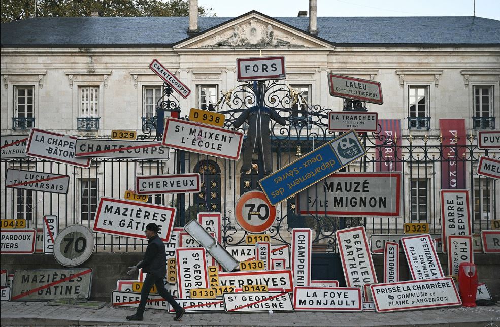 في 7 تشرين الثاني، أعاد مزارعون في نيورت، فرنسا، لافتات الطرق التي سرقوها. كانوا يحتجون على اتفاق تجاري للاتحاد الأوروبي يخشون أن يؤدّي إلى زيادة الواردات من أميركا الجنوبية.