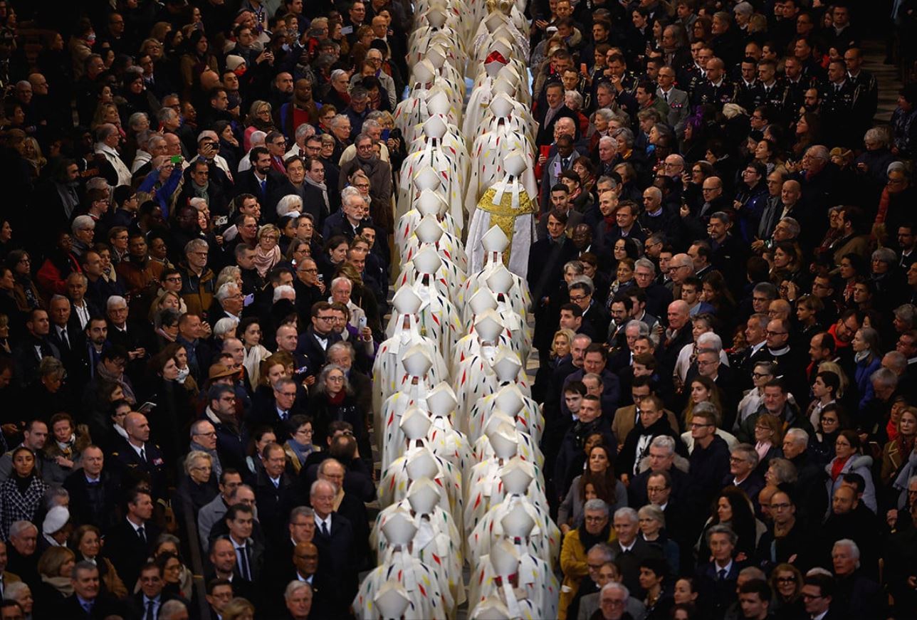 بعد أيام فقط من انهيار حكومتها، احتفلت فرنسا بإعادة ترميم كاتدرائية نوتردام بعد مرور خمس سنوات على الحريق الذي أدّى إلى انهيارها الجزئي. استضاف الرئيس الفرنسي إيمانويل ماكرون حشداً من الشخصيات الأجنبية في قداس الافتتاح في الثامن من كانون الأوّل.