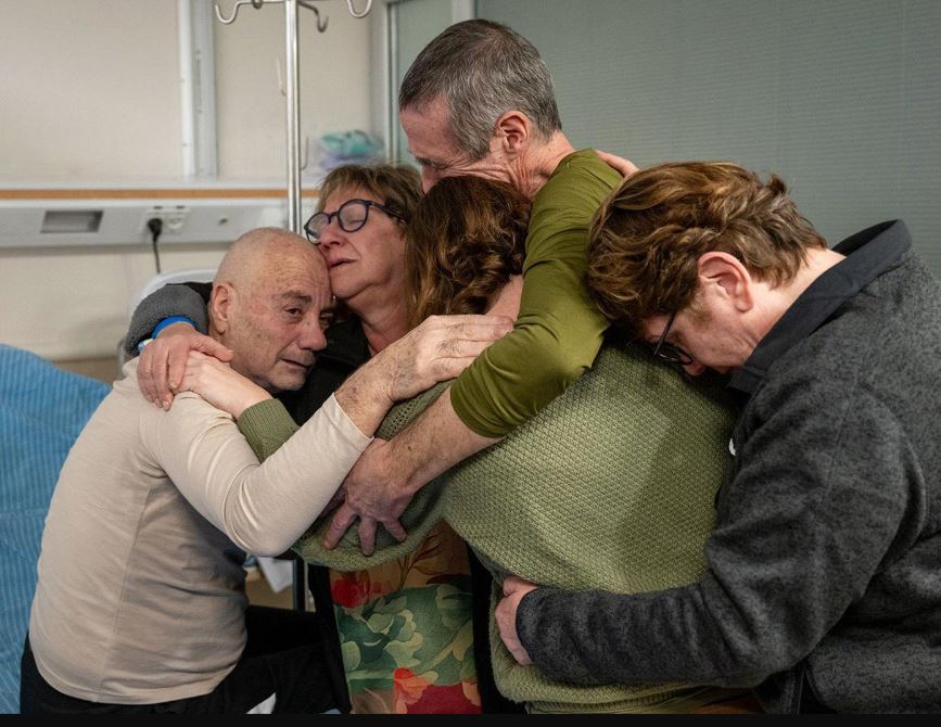 لويس حار، 71 عاماً (إلى اليسار)، احتجزته حركة "حماس" كرهينة في عام 2023 خلال هجمات 7 تشرين الأول (أكتوبر) على إسرائيل. وبعد أكثر من 4 أشهر، تمّ لمّ شمله مع عائلته بعد أن أنقذته قوات الأمن الإسرائيلية.