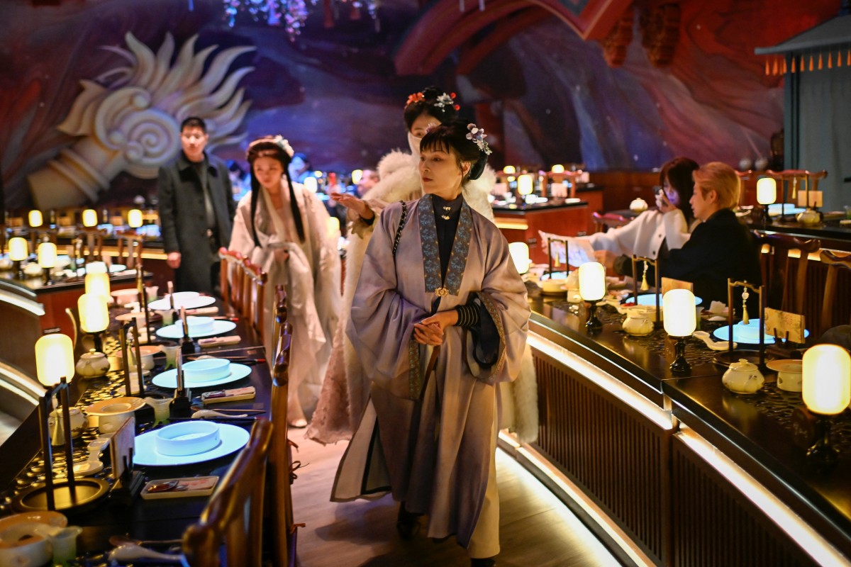 بالأزياء التقليدية المصنوعة من الحرير والأطباق الفاخرة، يأخذ مطعم في بكين زبائنه في رحلة عبر تراث الصين مصحوبة بعرض تفاعلي، تستقطب الجيل الشاب خصوصا.