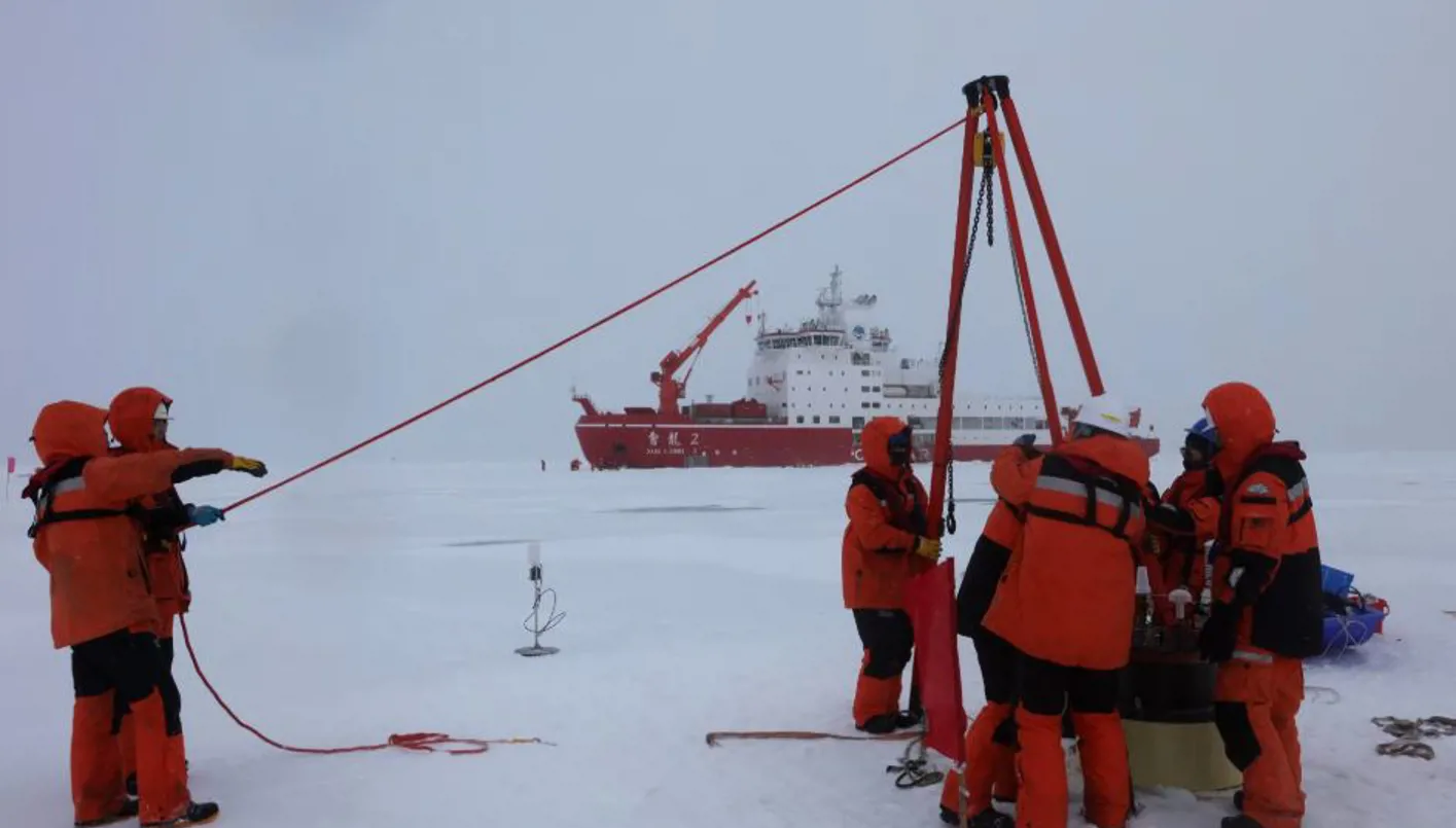 أعضاء بعثة صينية في القطب الشمالي، (اعلام صيني).
