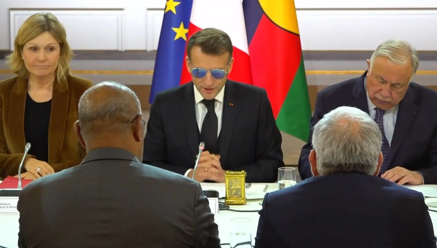 وقدّم ماكرون أمس الجمعة اعتذاره للحاضرين عن ارتداء النظارات، موضحاً أن السبب هو وجود مشكلة بسيطة في عينه تتطلّب منه استخدامها لفترة من الوقت.