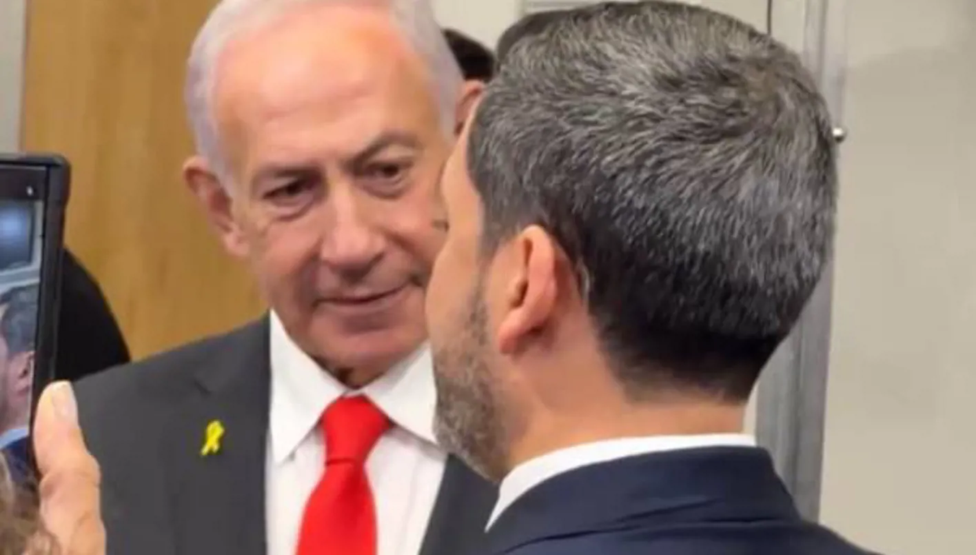 لاحقاً، وصل رئيس برلمان باراغواي إلى قاعة المحكمة حيث التقى نتنياهو خلال جلسة المحاكمة.