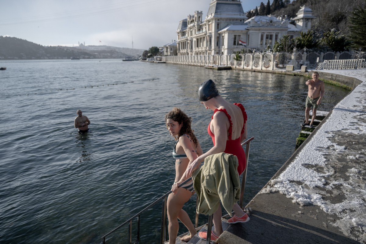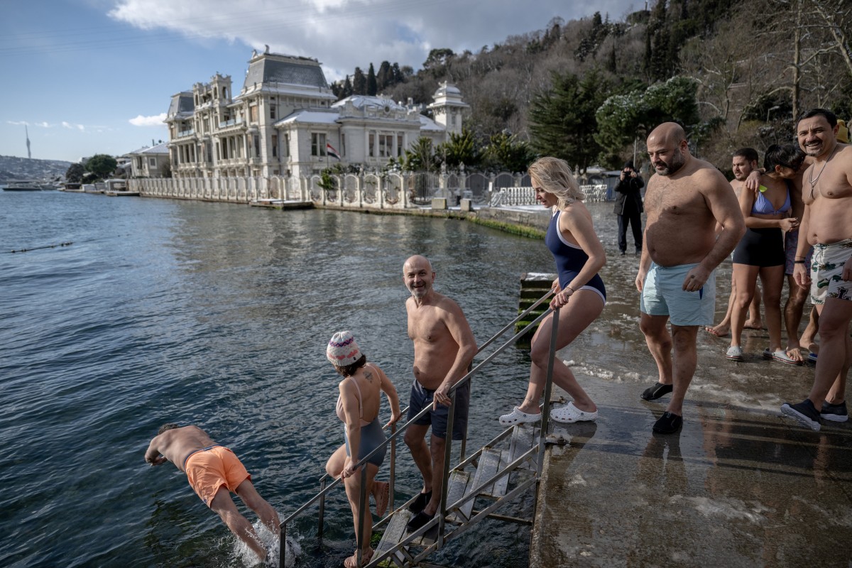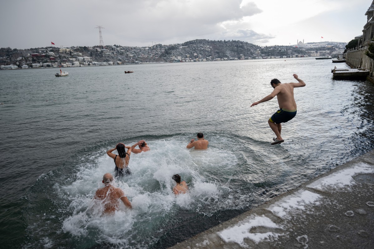 لمياه مضيق البوسفور عشاق في مدينة اسطنبول التركية، لا يثنيهم الصقيع ولا يردّهم أي ظرف آخر عن السباحة فيها، بل يجدون متعة لا تُضاهى في ممارسة هوايتهم تحت الثلج.