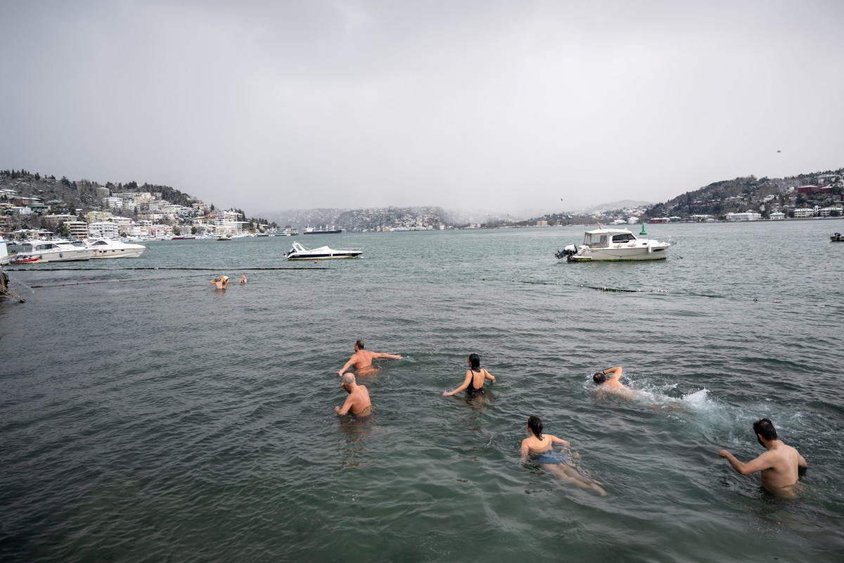 السباحة في مياه البوسفور الباردة تُثلج قلوب عشاق المضيق في اسطنبول (صور)