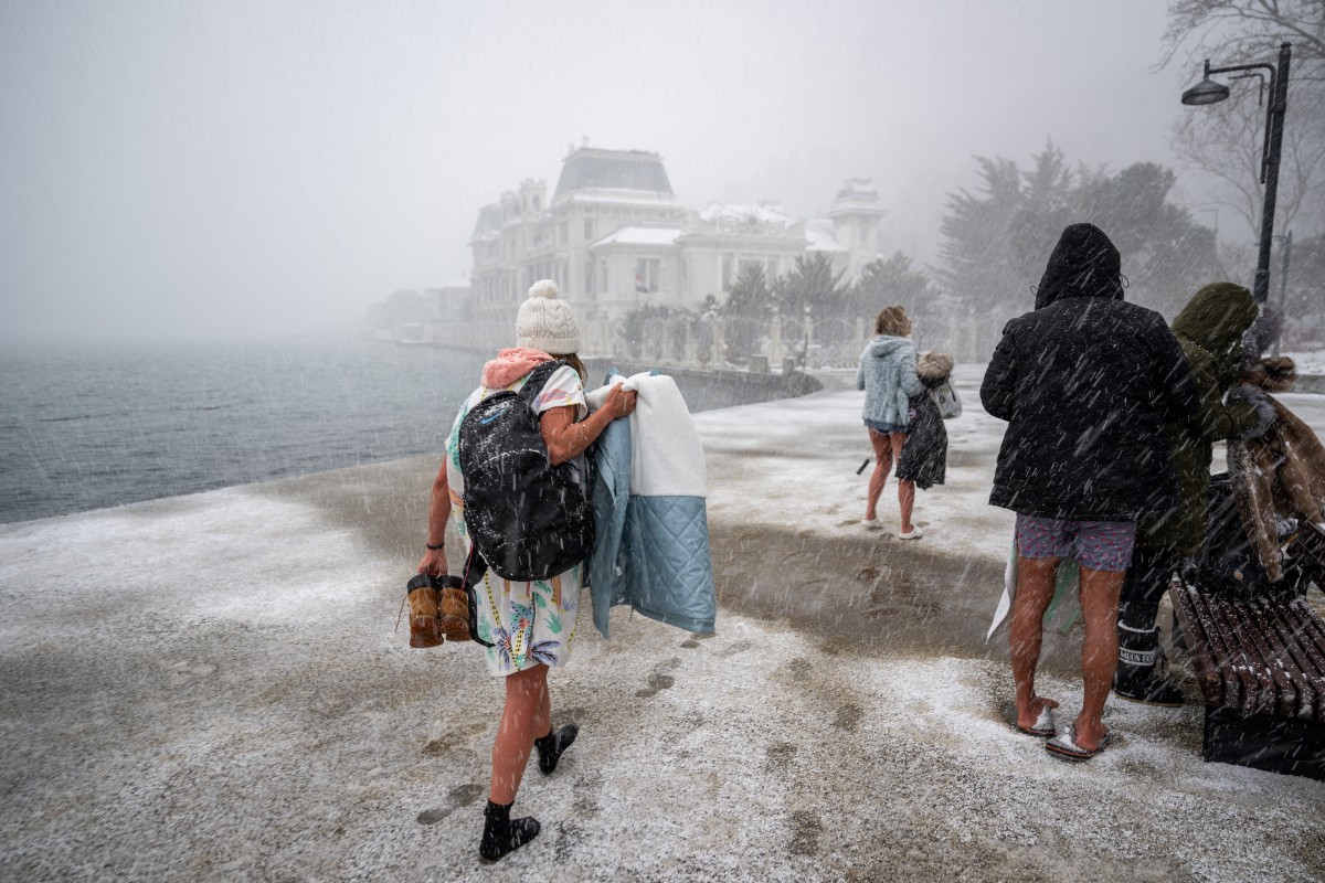 في اليوم السابق، حضر رجل الأعمال في مجال النسيج البالغ 45 عاما، على الرغم من العاصفة، على ما يروي، عارضا باعتزاز مقطع فيديو يبدو فيه وهو يسبح تحت رقاقات الثلج التي كانت تتساقط منذ ثلاثة أيام مترافقة مع البرق والرعد.