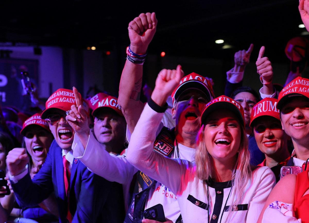 في خطاب النصر الأول، مستبقاً إعلان النتائج الرسمية، قال ترامب خلال كلمة لأنصاره، في مقر حملته بفلوريدا، إنه "استطاع تجاوز كل المعوقات وحقق أروع إنجاز سياسي"، معلقاً: "إن حركة "ماغا" هي أعظم حركة سياسية في التاريخ، لأنها حققت نصراً سيسمح بجعل أميركا عظيمة مرّة أخرى. نحن نفوز في كل الولايات المتأرجحة وسنصل إلى 315 صوتًا بالمجمع الانتخابي. أميركا ستدخل عصرًا ذهبيًا".