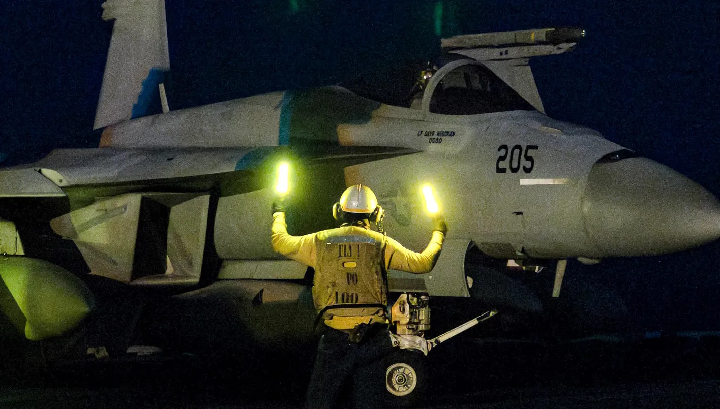 - 12:15 بتوقيت شرق الولايات المتحدة: إطلاق طائرات إف-18 (حزمة الضربة الأولى)