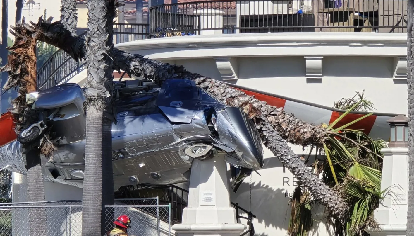 المروحية علقت بين أشجار النخيل بعد تحطّمها فوق شاطئ في كاليفورنيا pic.twitter.com/IxmonXUbH2