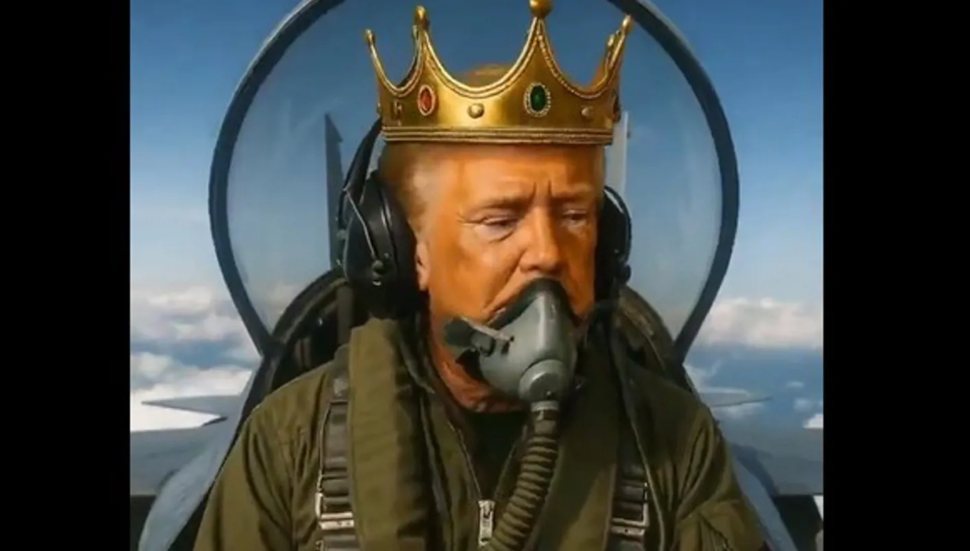 الفيديو الذي أثار الجدل نشره ترامب عبر حسابه على منصة "تروث سوشال"، ويظهر فيه وهو يقود طائرة حربية كُتب عليها "ترامب الملك"، ويلقي منها ما يبدو أنها "قاذورات" على المتظاهرين.