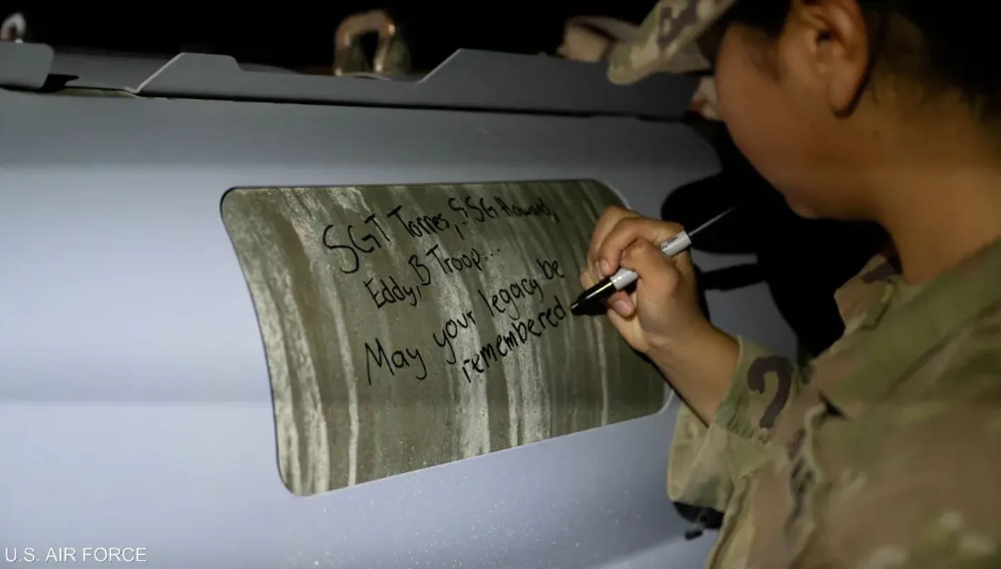 تداولت مواقع التواصل الاجتماعي، صورة لجندي يكتب رسالة على قذيفة، قبل إطلاقها في القصف الأميركي الذي استهدف عشرات الأهداف لتنظيم "داعش" في سوريا.