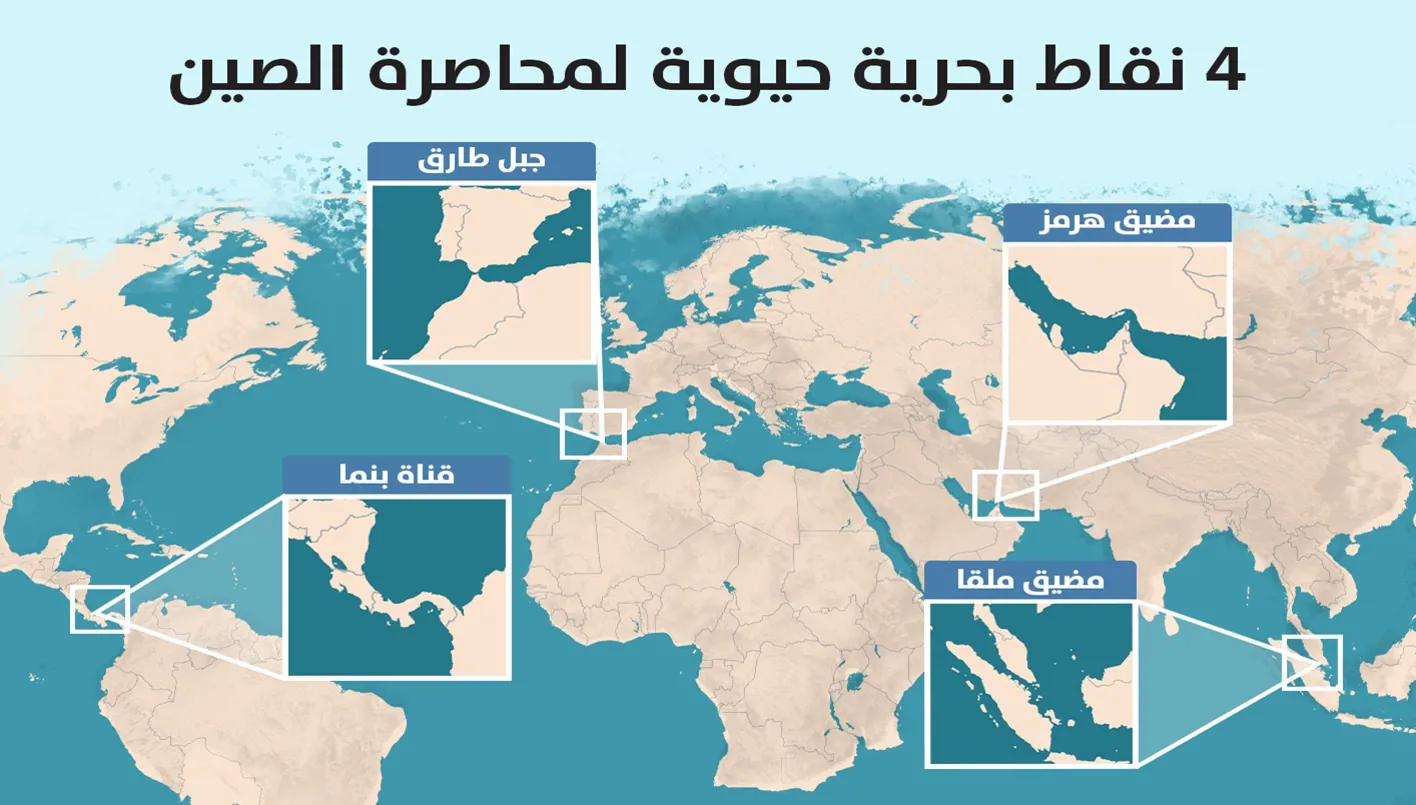4 ممرّات بحرية تغيّر قواعد اللعبة… كيف تُطوّق أميركا الصين قبل قمّة ترامب - شي؟