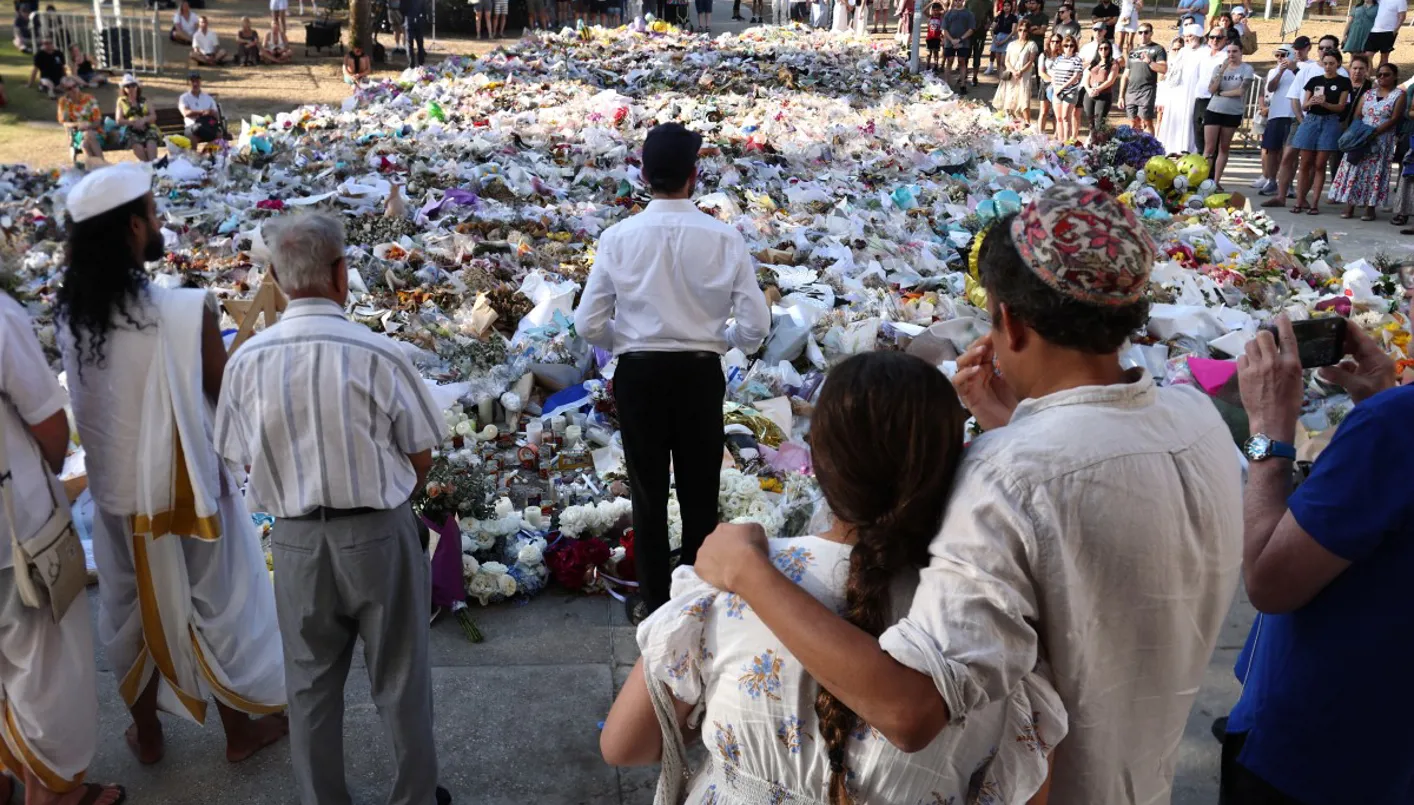 نصب تذكاري تخليداً لذكرى قتلى حادث إطلاق النار على ‏شاطئ بوندي في سيدني (أ ف ب)‏