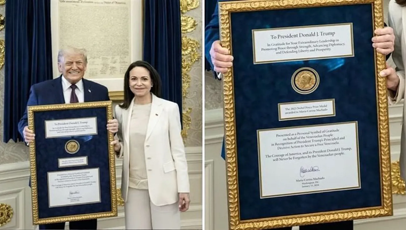 وقالت زعيمة المعارضة الفنزويلية ماريا كورينا ماتشادو إنَّها "قدمت" ميدالية جائزة نوبل للسلام التي حازتها لترامب، في محاولة لاستمالة الرئيس الأميركي الذي همّشها منذ إطاحة واشنطن الرئيس نيكولاس مادورو.