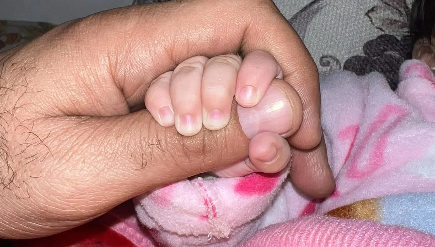 بعد 23 عاماً على زواجهما، جاءت "جنة" كحلم جميل على حياة رامي وإيمان، ولم يكن قد مضى على وجودها معهما أكثر من أسبوعين، إلا أنها استطاعت منذ اللحظة الأولى أن تبثّ أجمل المشاعر برغم قساوة ما شهدته غزة في حربها.