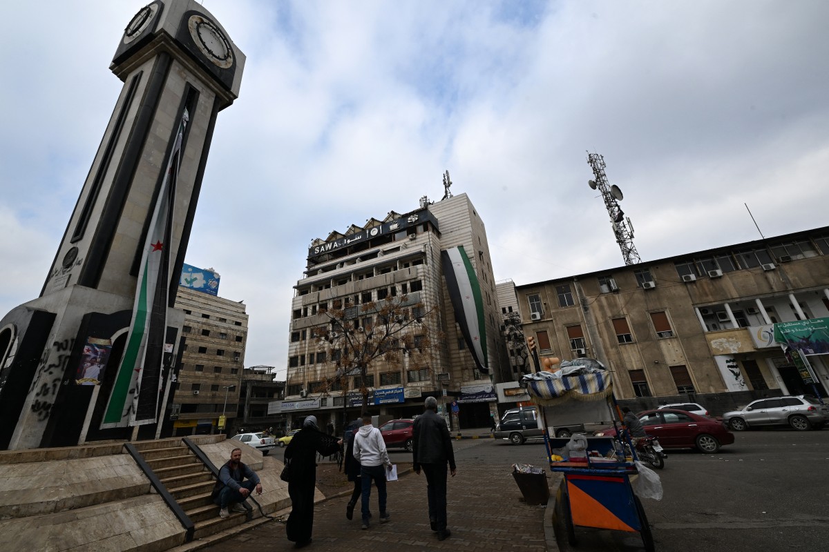 أشخاص يمشون في الساحة الرئيسية في حمص (10 شباط 2025، أ ف ب).