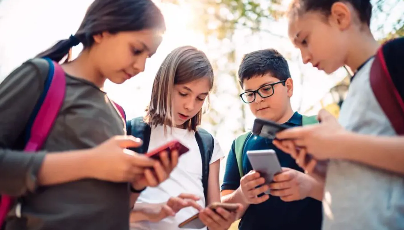 أطفال يلعبون ألعاب فيديو على هواتفهم الذكية بعد المدرسة (shutterstock).