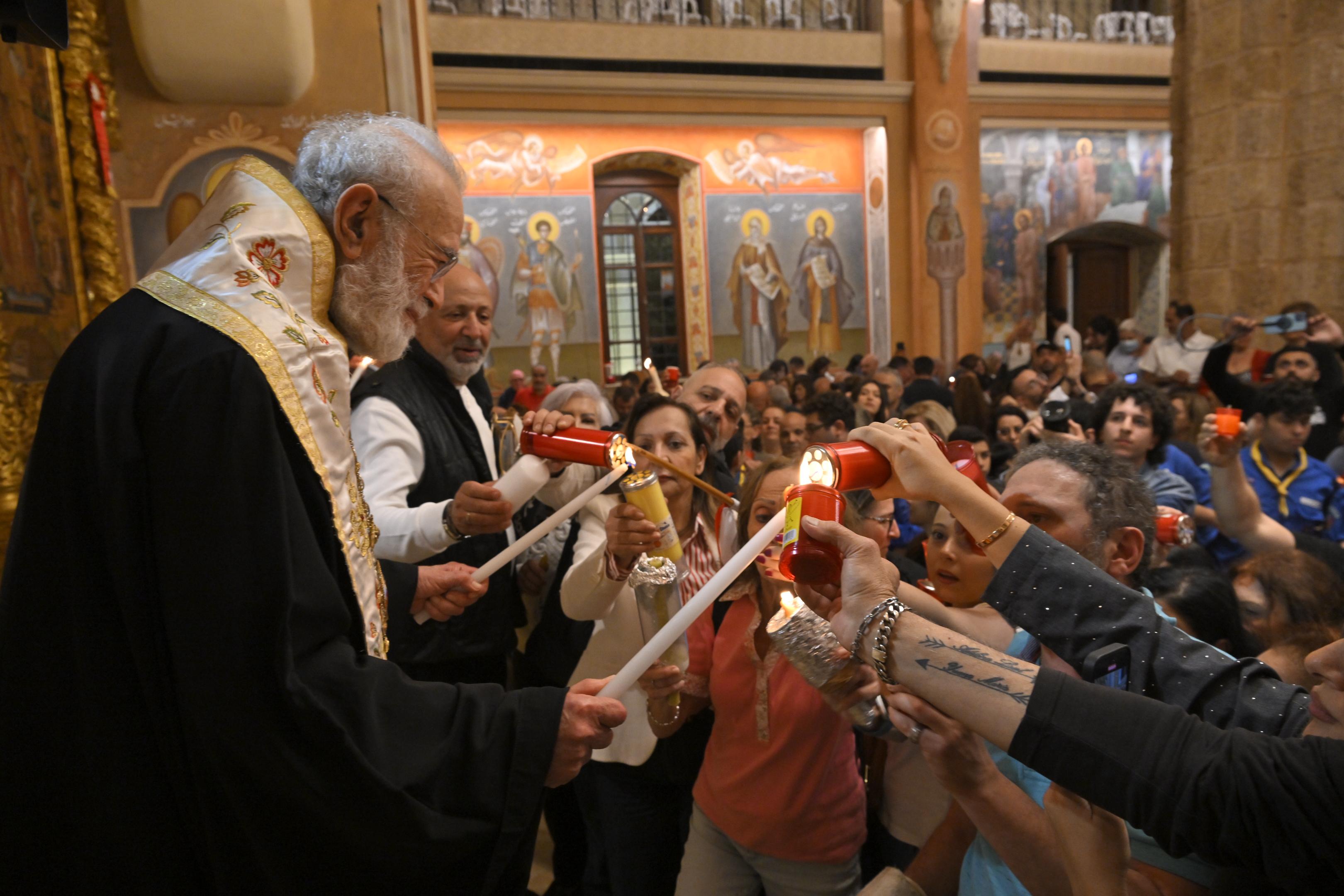 حشود كبيرة تتهافت إلى كاتدرائية مار جاورجيوس وسط بيروت لاستقبال شعلة النور المقدّسة (فيديو + صور)
