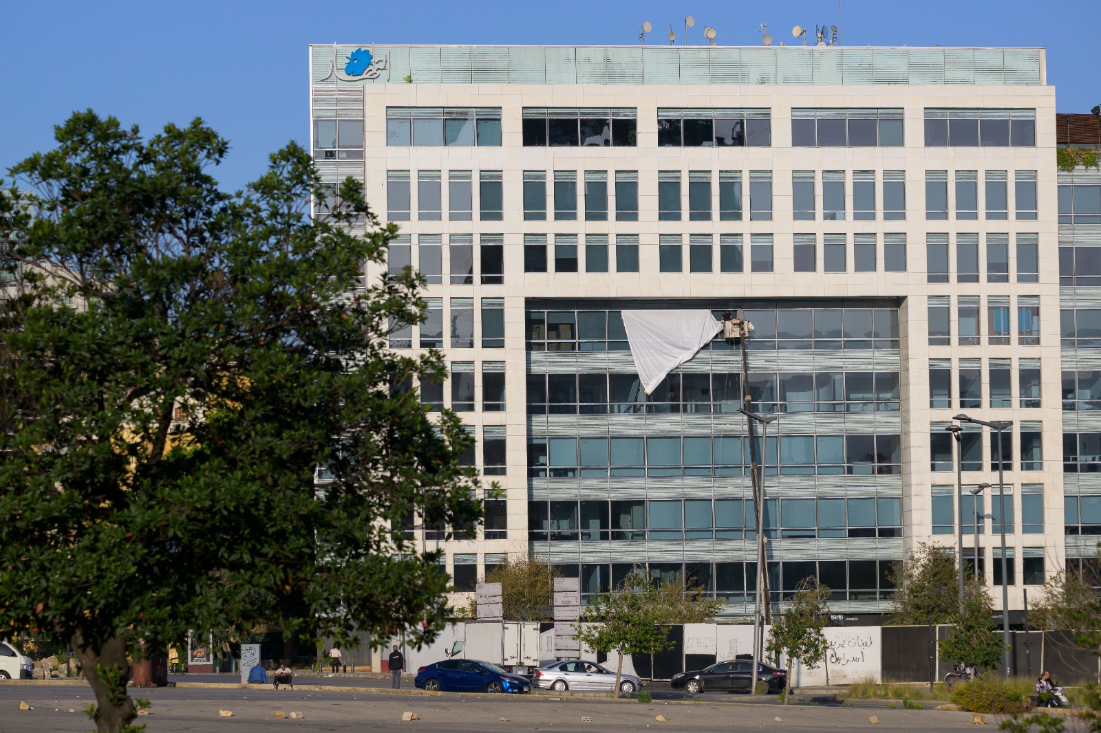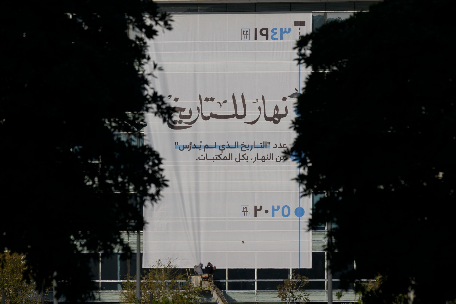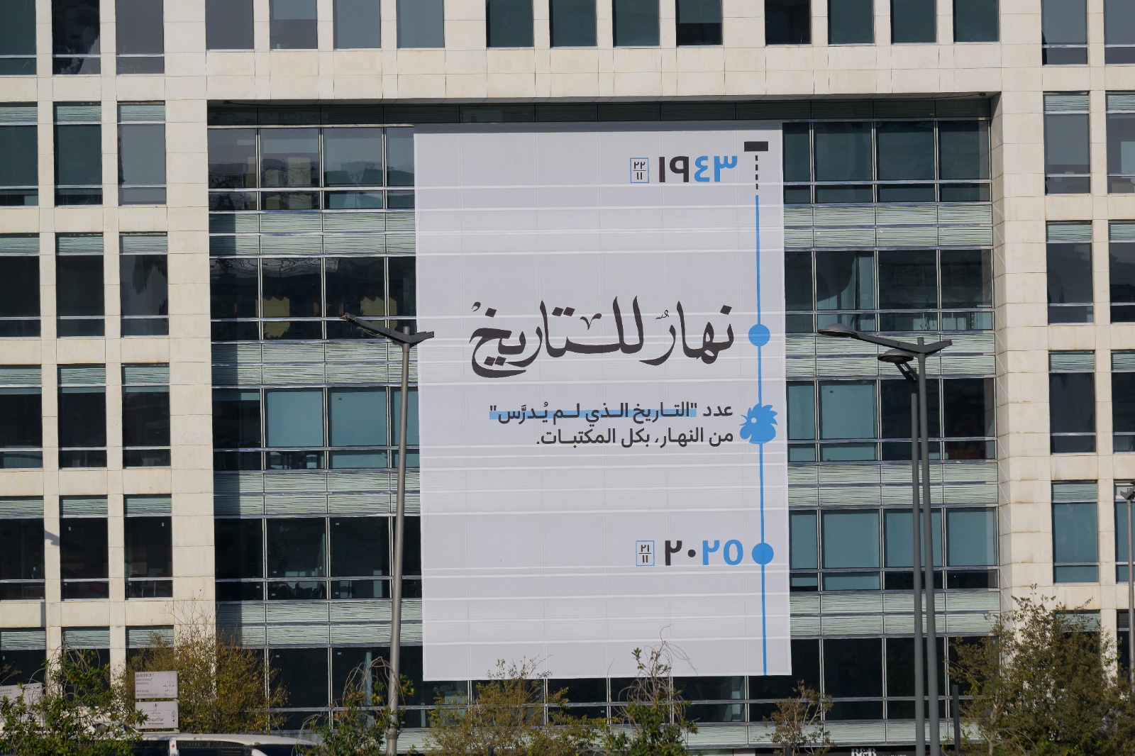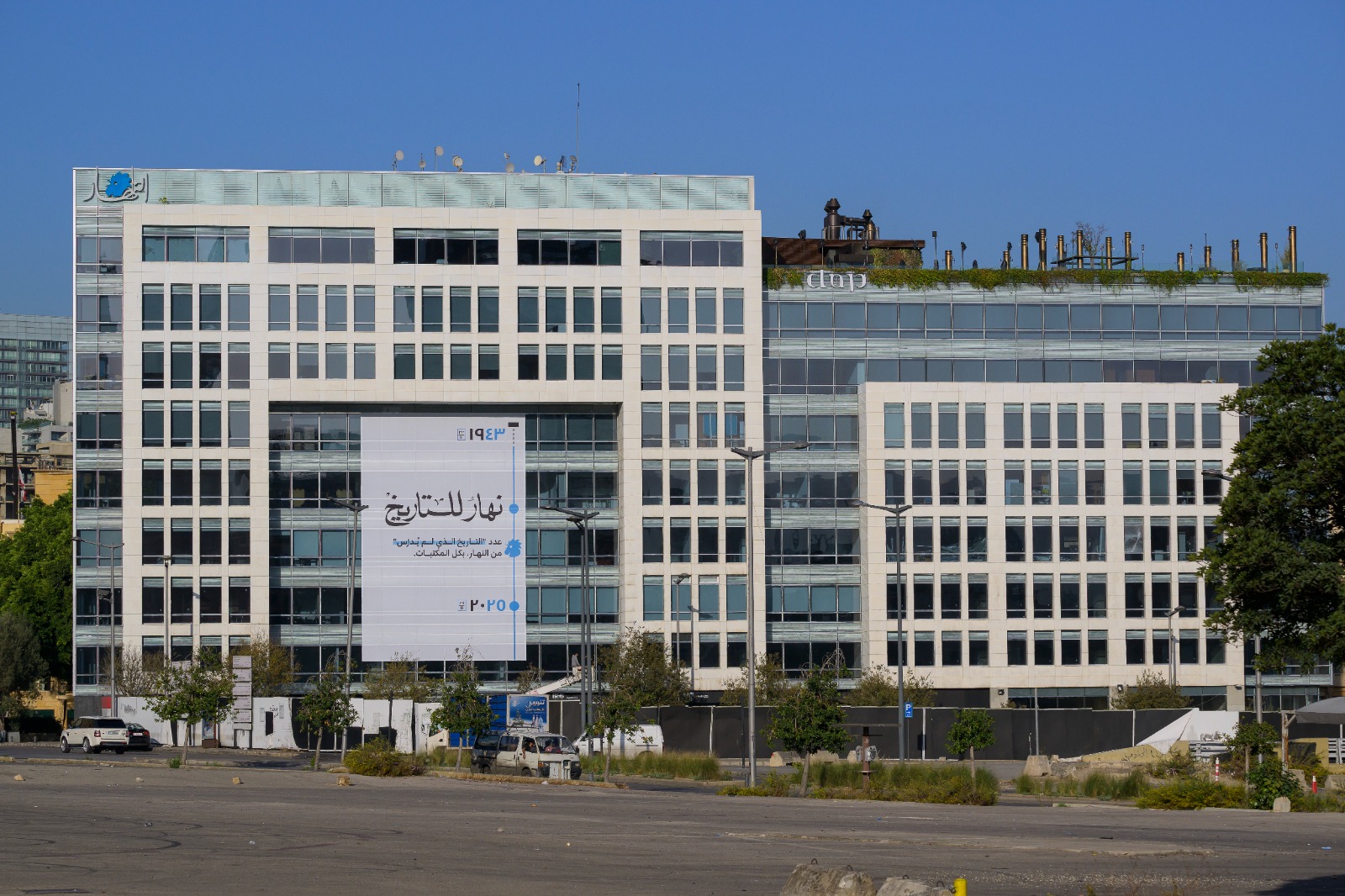 على واجهة مبنى "النهار" في وسط بيروت، رُفع ملحق العدد الخاص بعنوان "التاريخ الذي لم يُدرّس" بمناسبة ذكرى الاستقلال.