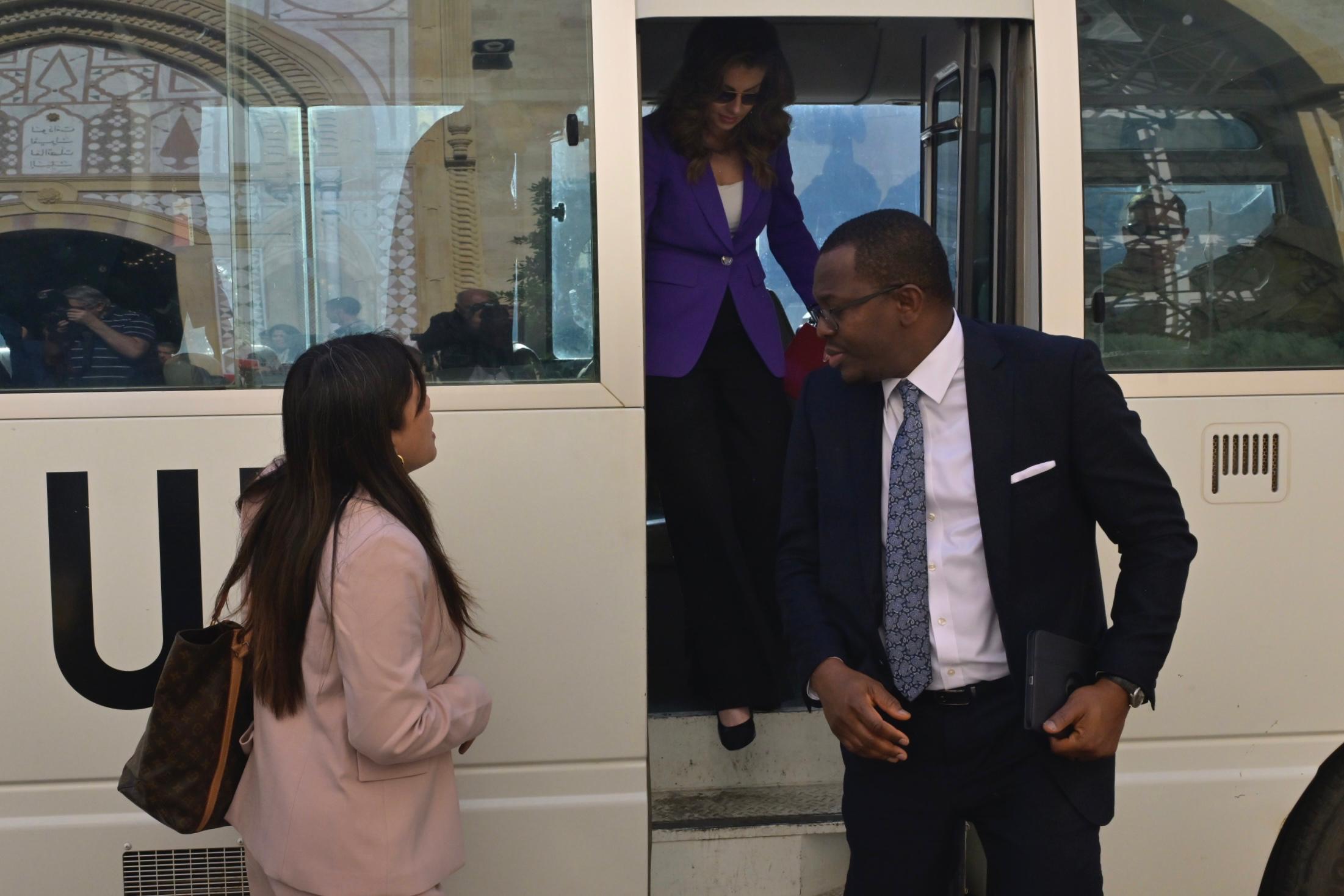 الحافلة التي تقل وفد سفراء وممثلي بعثات مجلس الأمن الدولي (نبيل إسماعيل).