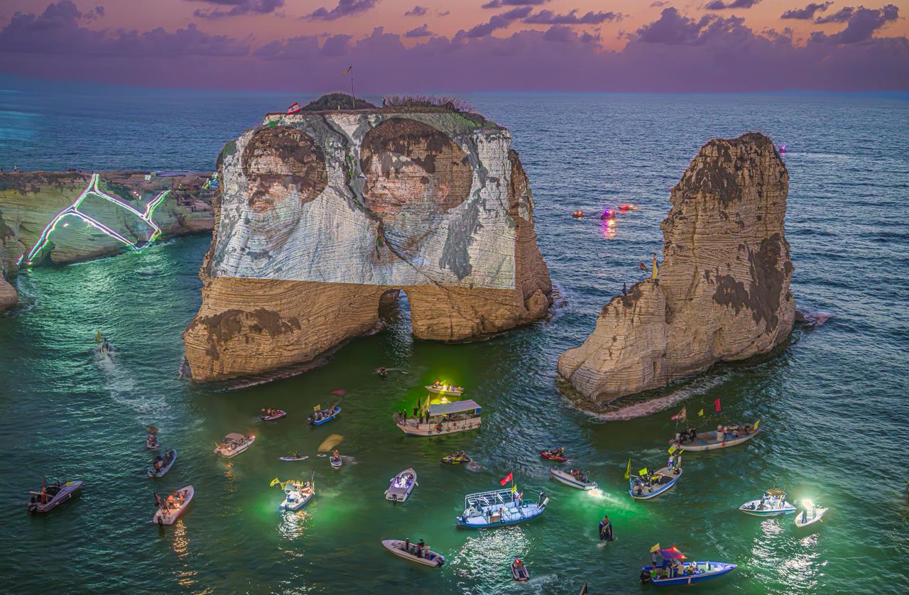 إضاءة ضخرة الروشة في ذكرى نصرالله