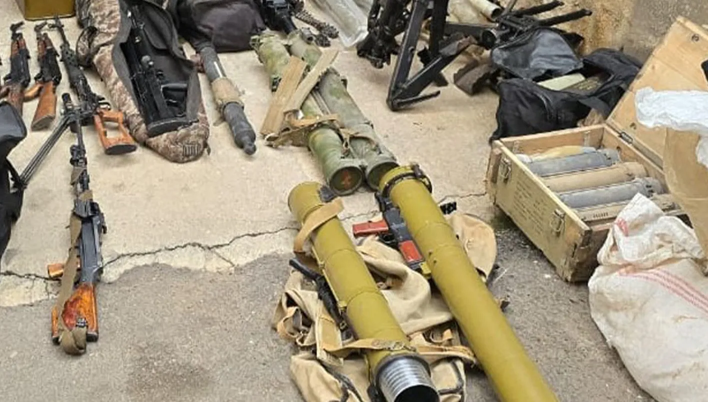 /1/ كلغ من حشيشة الكيف، معدّات تُستخدم في تصنيع المخدّرات وكمّية كبيرة من الأسلحة الحربية، تضمّنت: قناصات، عدداً من قذائف الهاون مع قواعد إطلاقها، رشّاشات مضادّة للدروع، قاذفات قنابل، قواذف مضادّة للدروع والتحصينات، رشّاشات آليّة، وكمّية كبيرة من الذخائر المختلفة.