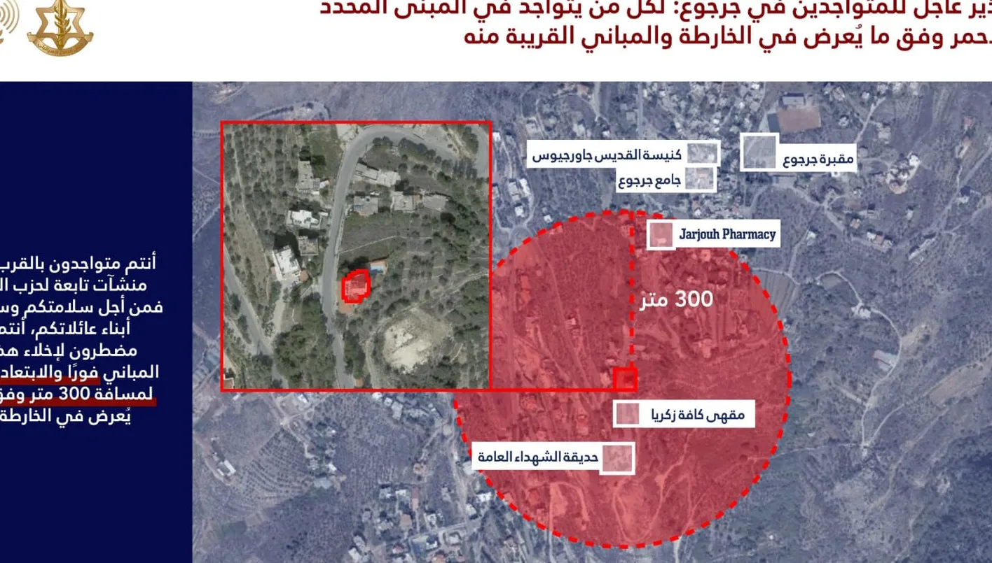 وجّه الجيش الإسرائيلي إنذارات بضرورة الإخلاء لسكان بلدات قناريت والكفور (النبطية) وجرجوع في جنوب لبنان.