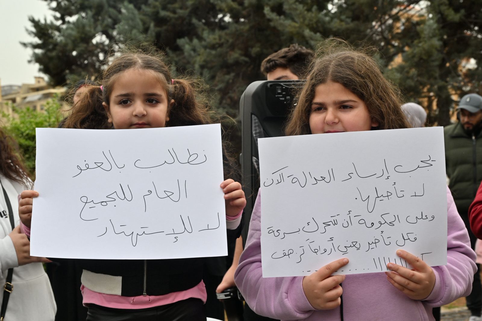 كما أُلقيت كلمات دعت رئيس الحكومة نواف سلام ووزير العدل عادل نصار لتحمل مسؤولياتهما في هذا الإطار، وإلى "تخفيف السنة السجنية الى 6 أشهر أو إصدار عفو عام، إضافة إلى تحسين أوضاع المساجين".