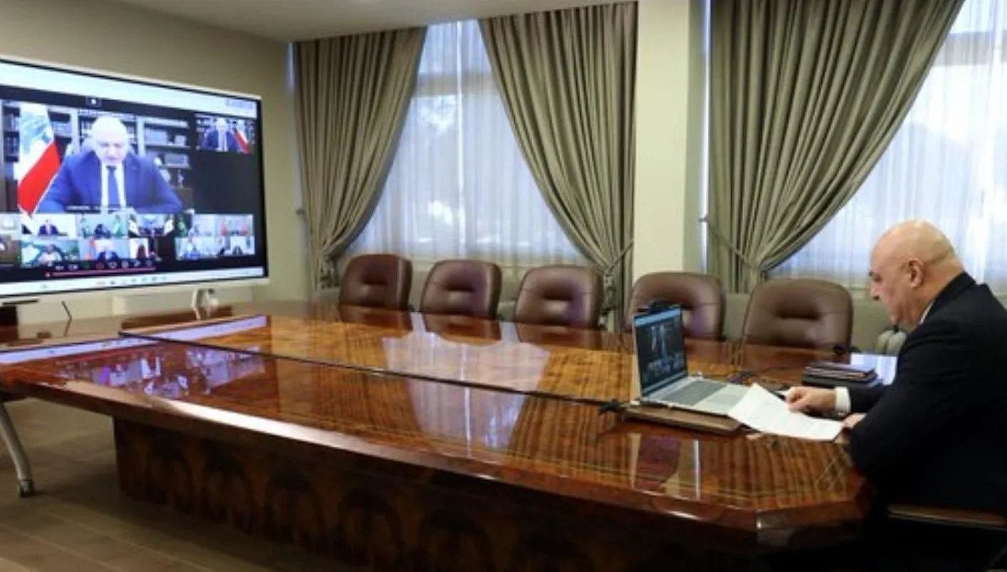 عون مشاركاً في لقاء افتراضي عبر تقنية "زووم"، شارحاً الواقع اللبناني في ضوء الاعتداءات الإسرائيلية (الرئاسة اللبنانية).