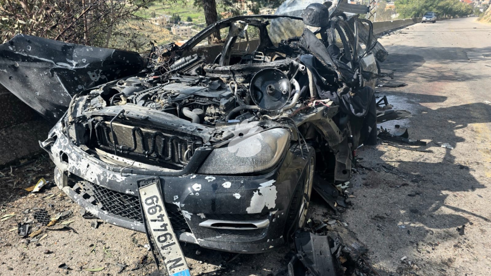 عاينت "النهار" بعدسة الزميل أحمد منتش مكان الاستهداف لسيارة الإعلامي علي شعيب والإعلامية فاطمة فتوني، بعد استشهادهما بغارة إسرائيلية في جزين جنوب لبنان.