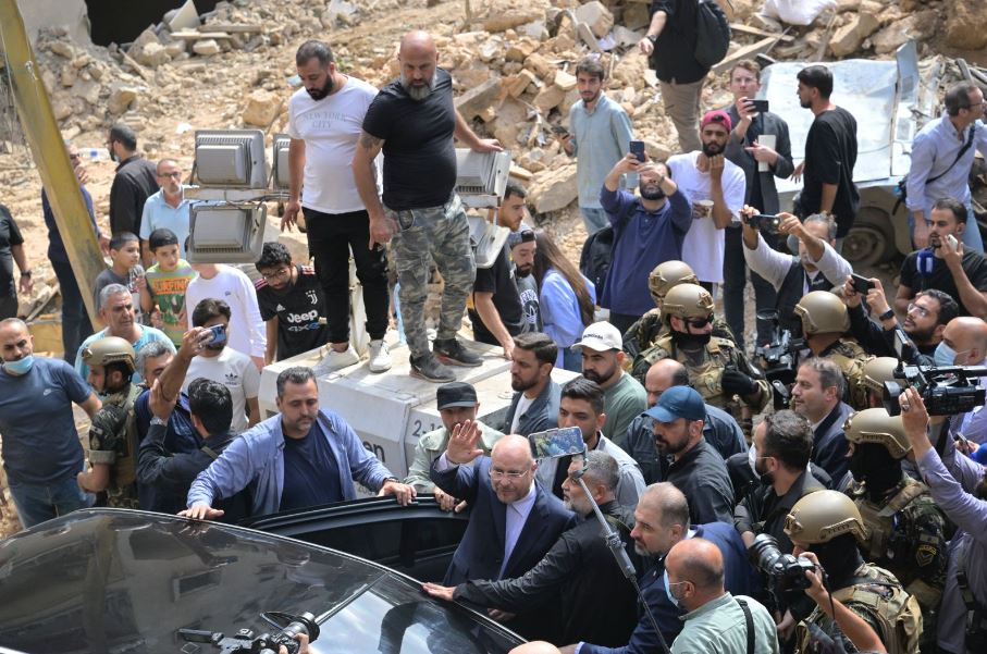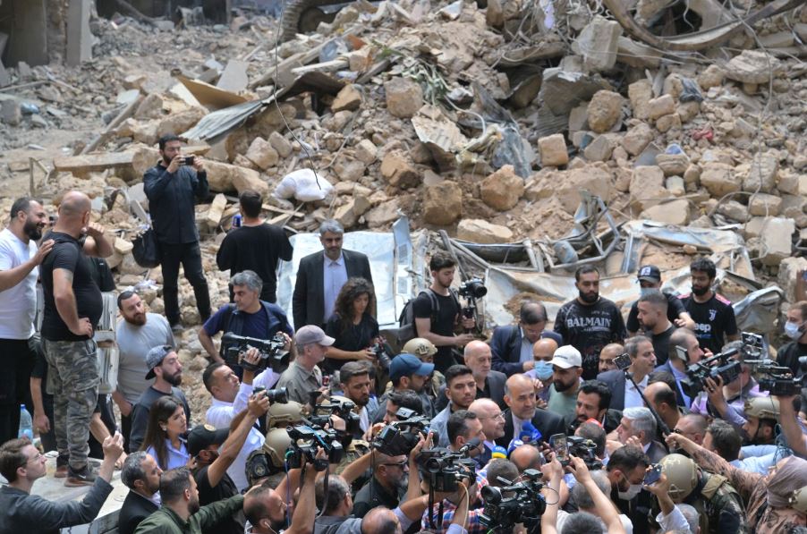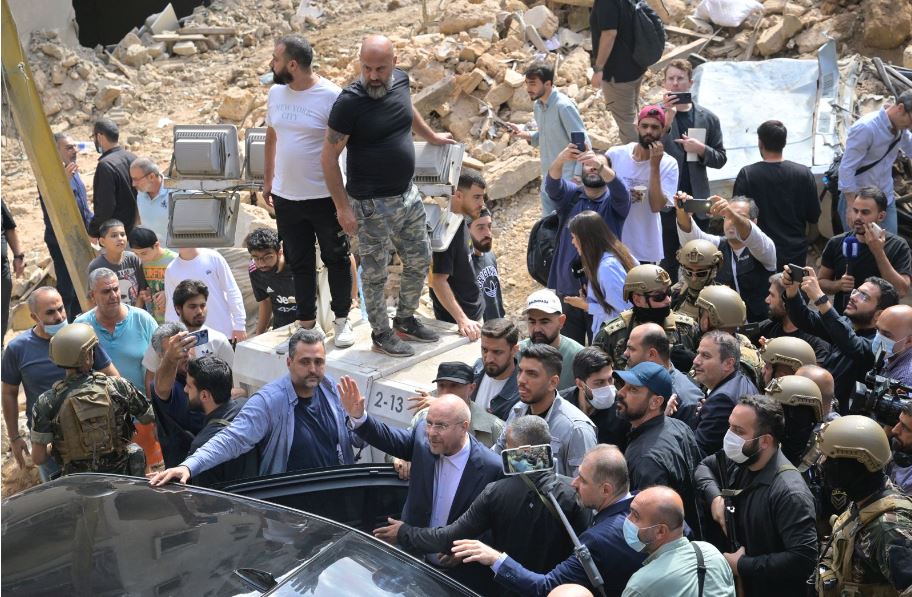 قاليباف يتفقد المكان المستهدف في بيروت، تصوير الزميل نبيل اسماعيل.