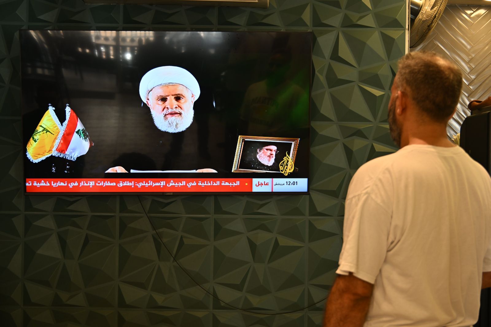 الشيخ نعيم قاسم عبر الشاشة (حسام شبارو).