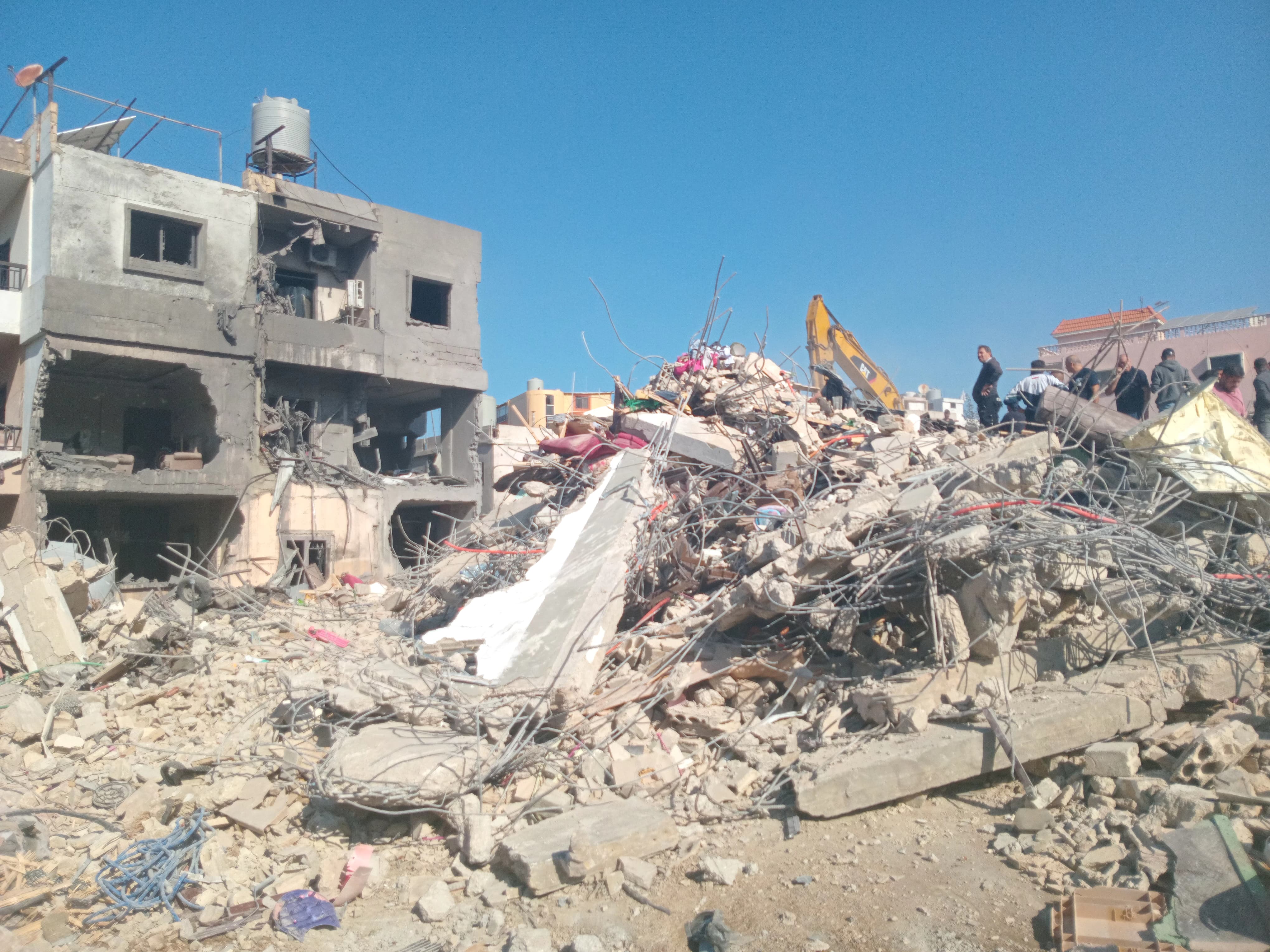 واصلت فرق الدفاع المدني والصليب الأحمر عمليات رفع  الأنقاض والبحث عن مفقودين من مكان المبنى الذي  استهدفه الطيران الحربي الإسرائيلي أمس، في الصرفند. المشهد هنا