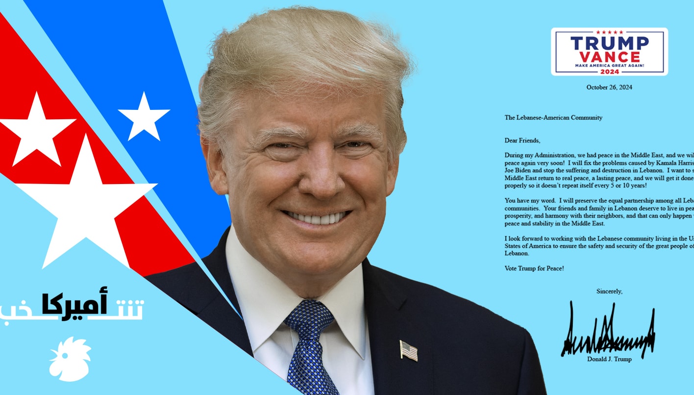 وجه الرئيس الاميركي السابق دونالد ترامب رسالة الى الأميركيين اللبنانيي الاصل قال فيها إنه سيعمل على تحقيق السلام في الشرق الاوسط، ويحافظ على الشراكة بين جميع الطوائف. وحض الناخبين من أصل لبناني للتصويت له من أجل السلام.