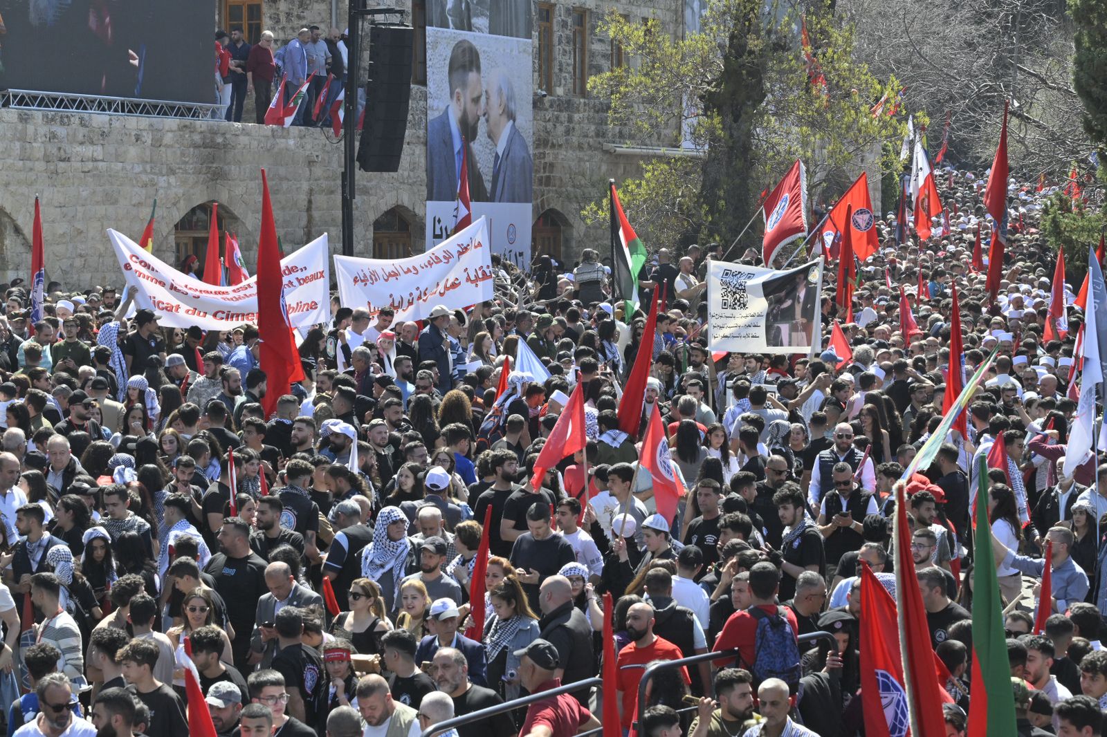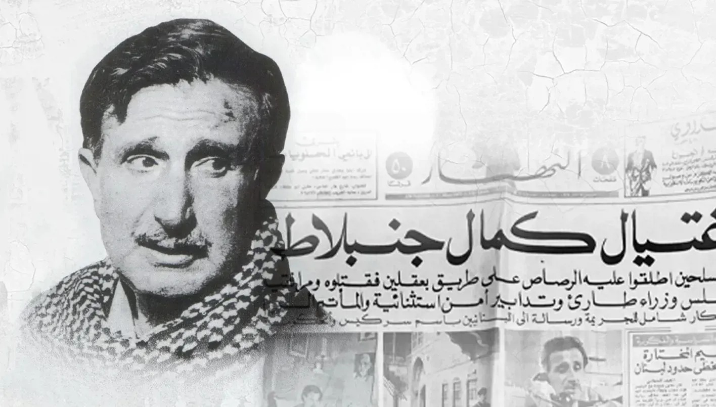 يافطة رفعها المشاركون في الذكرى الـ48 لاغتيال كمال جنبلاط في قصر المختارة (تصوير نبيل اسماعيل).