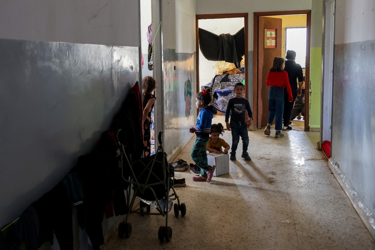 وتتشارك العائلات الغرف وقاعات المدرسة التي تفيض بقاطنيها من نساء وأطفال ورجال، يفترشون الأرض على فرش وبطانيات وقرب بعضهم أكياس وضعوا فيها ملابسهم.