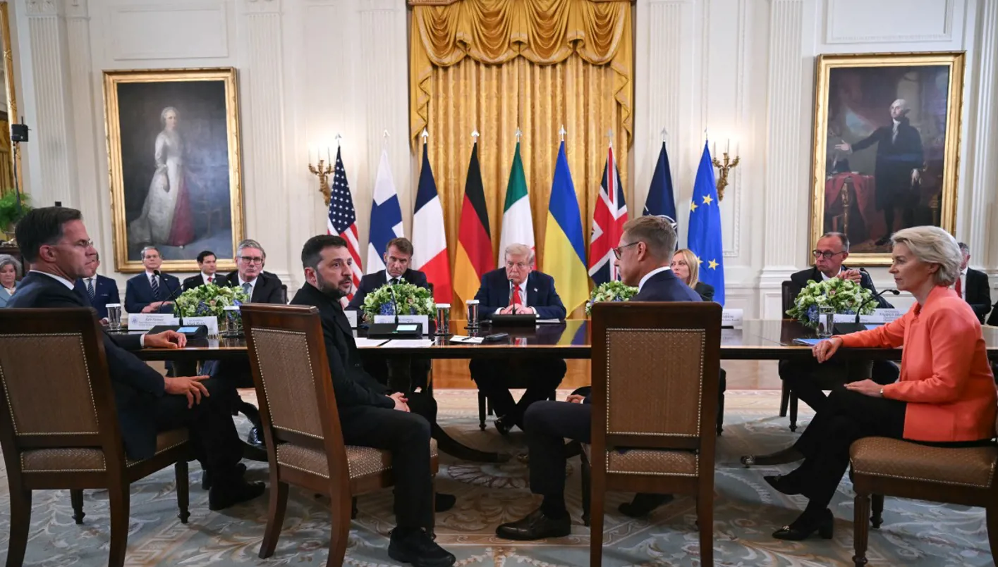 لقاء ترامب مع القادة الأوروبيين في البيت الأبيض (أ ف ب).