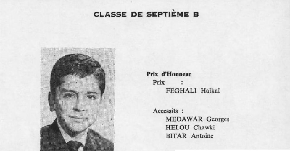 وأضاف: "كان رئيس الهيئة التنفيذية في القوات اللبنانية السابق ومؤسس حزب الوعد الوزير والنائب الراحل إيلي حبيقة من رفاق صفه. ومن الذين أعرفهم وما زلت على تواصل معهم وهم رفاق الصف لسعادة السفير الحكماوي.. الصحافي الصديق منصور مبارك ابن شقيق المطران إغناطيوس مبارك وخال النائبة السيدة ستريدا جعجع . كما كان من رفاق السفير في المدرسة الدكتور هيكل الفغالي وفوزي حسيب عبد الساتر، ابن بحر اللغة العربية العلامة حسيب عبد الساتر ونبيل شختورة ابن أبي عادل صديق الحكماويين وجوزف حلو شقيق المرحوم غي حلو. ذكرت هذه الأسماء التي أعرفها شخصياً. ولكني شأنشر بعضاً من صفحات من الكتاب السنوي المكتوبة فيها أسماء رفاق الصف لسعادة السفير الحكماوي".