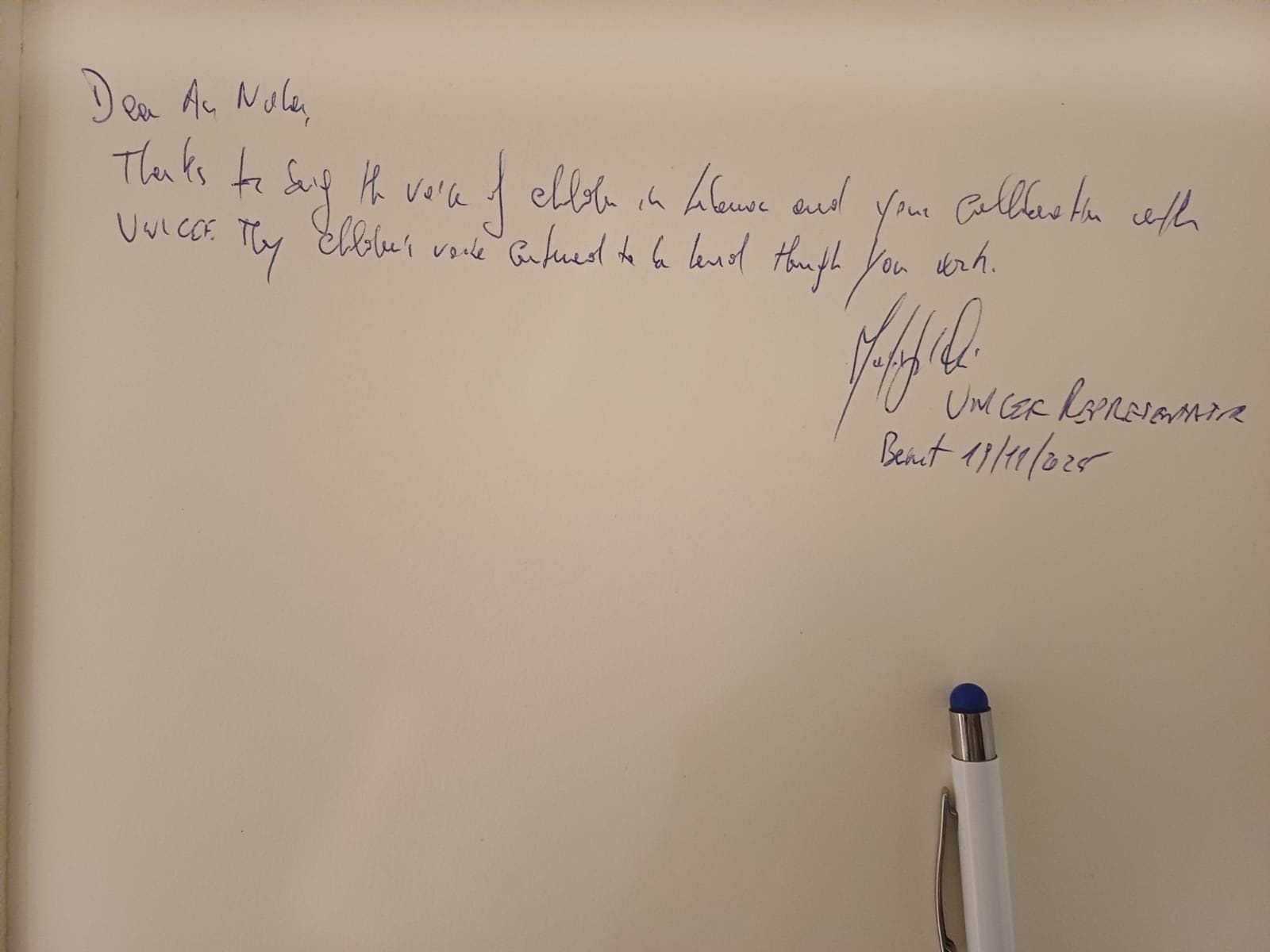 ودوّن كورسي رسالة في سجلّ "النهار" جاء فيها: "شكراً لكونكم صوت الأطفال في لبنان ولتعاونكم مع "اليونيسف"، ونتمنى أن يظل صوت الأطفال مسموعاً من خلال عملكم".