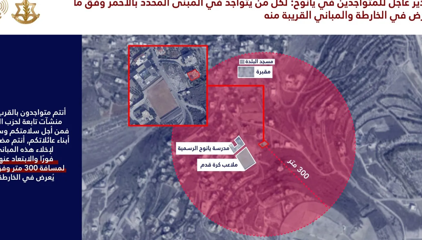 مساء أمس، أعلن المتحدث باسم الجيش الإسرائيلي أفيخاي أدرعي أنه "بعد إصدار الإنذار لمنزل في بلدة يانوح، توجه الجيش اللبناني عبر الآلية بطلب الوصول مجدداً إلى الموقع المحدّد الذي تم تجريمه ومعالجة خرق الاتفاق"، مضيفاً: "لقد قرّر الجيش الإسرائيلي السماح بذلك وبناء عليه تم تجميد الغارة موقّتاً حيث يراقب الهدف بشكل مستمر ويبقى على تواصل مع الآلية".