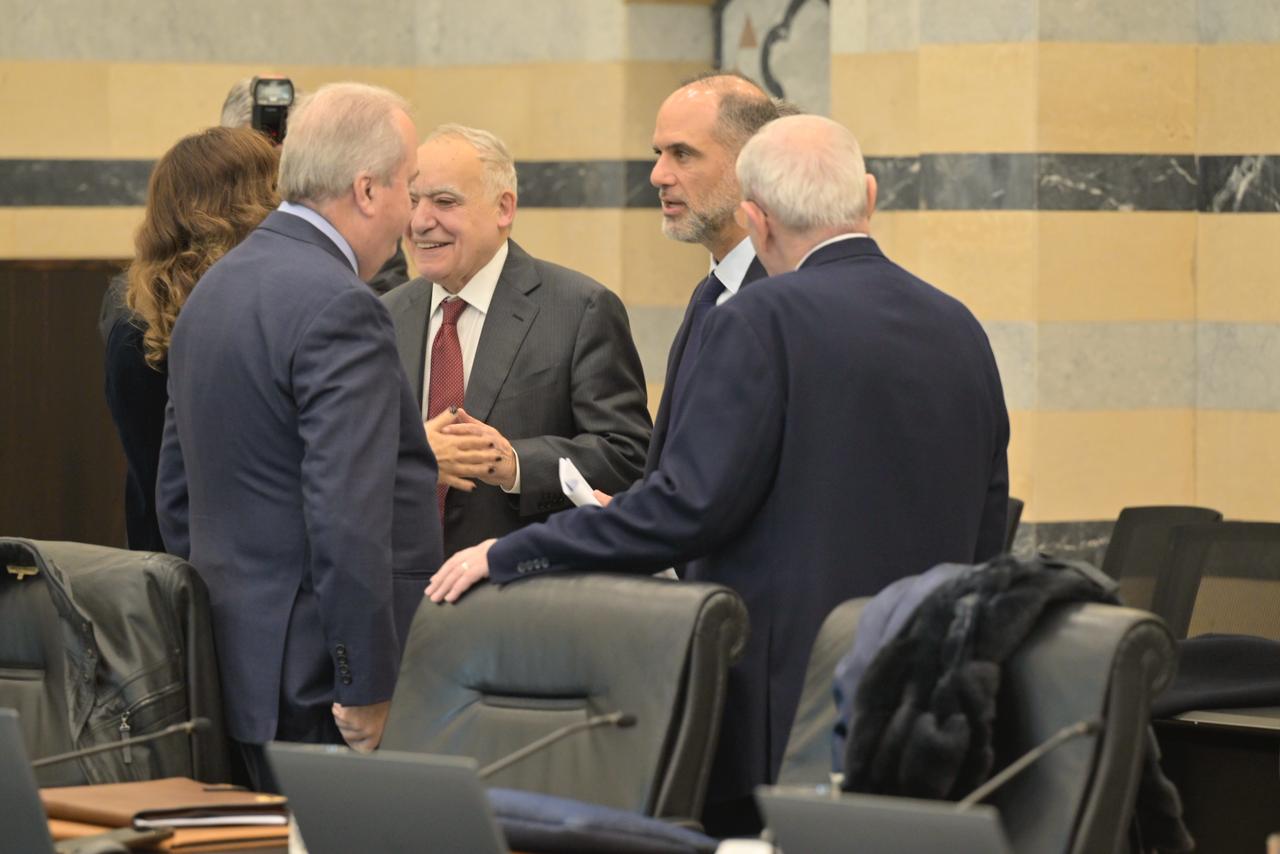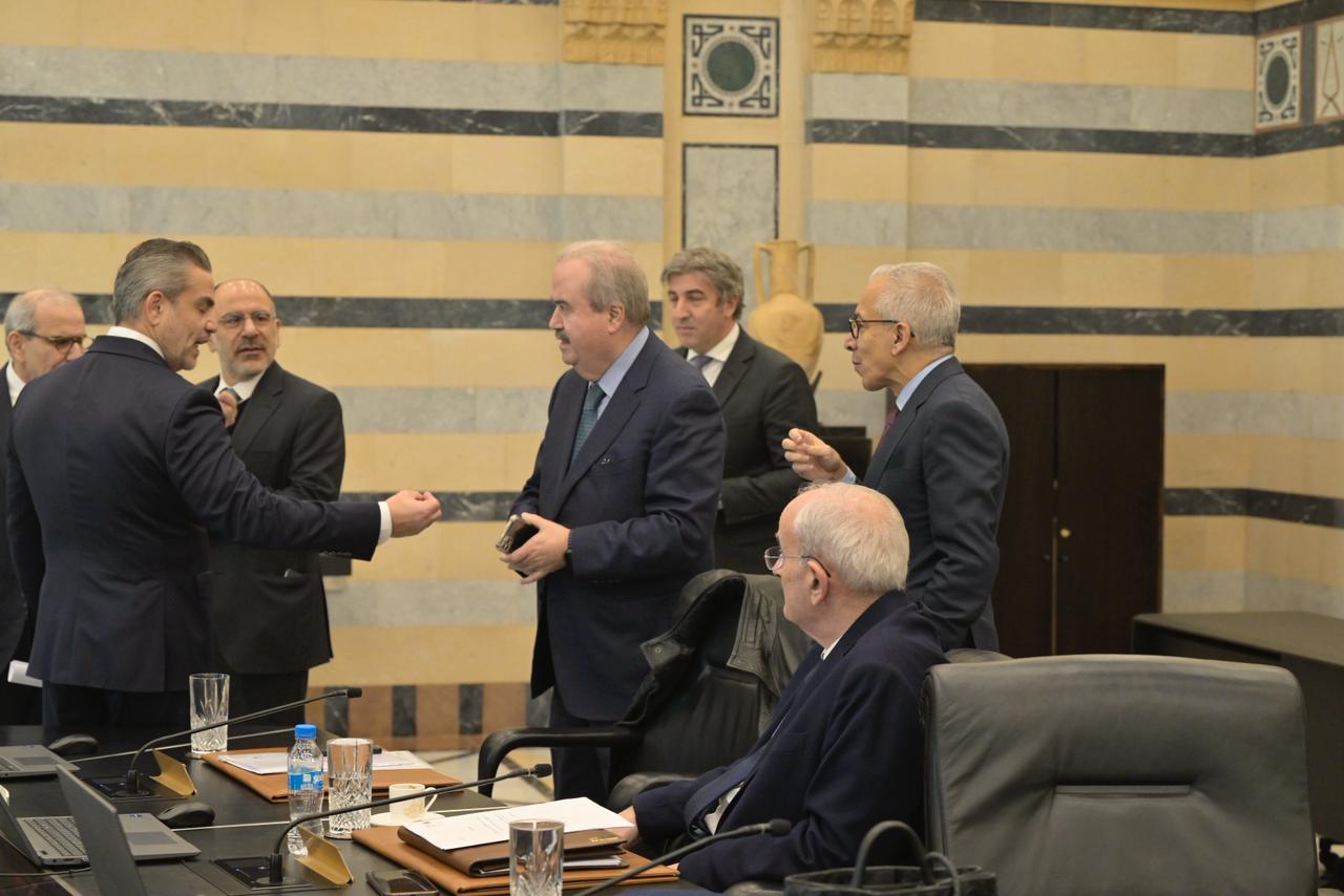 تراس رئيس الحكومة نواف سلام عصر اليوم الخميس، في السرايا الحكومية جلسة لمجلس الوزراء يحضرها نائب رئيس الحكومة طارق متري ووزراء المالية ياسين جابر، الثقافة غسان سلامة، الدفاع ميشال منسى، الطاقة والمياه جو صدي، السياحة لورا الخازن، الاقتصاد والتجارة عامر البساط، المهجرين وشؤون تكنولوجيا المعلومات والذكاء كمال شحادة، الداخلية والبلديات أحمد الحجار، العدل عادل نصار، الاتصالات شارل الحاج، الشباب والرياضة نور صار، الاتصالات شارل الحاج، الشباب والرياضة نورا بايراقتداريان، التربية والتعليم العالي ريما كرامي، الصناعة دجو عيس الخوري، شؤون التنمية الادارية فادي مكي، الأشغال العامة والنقل فايز رسامني، الاعلام بول مرقص، البيئة تمارا الزين ، الصحة العامة ركان ناصر الدين.