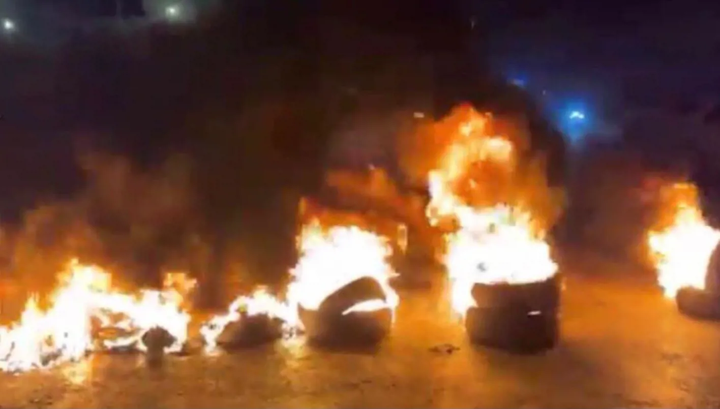 قطع طريق الجية بالإطارات المشتعلة من قبل محتجين pic.twitter.com/9xhdhMqCpw