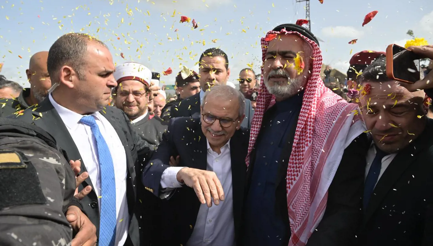 جنوبيون ينثرون الأرز والورود ترحيباً برئيس الحكومة نواف سلام خلال جولته في الجنوب (نبيل اسماعيل)