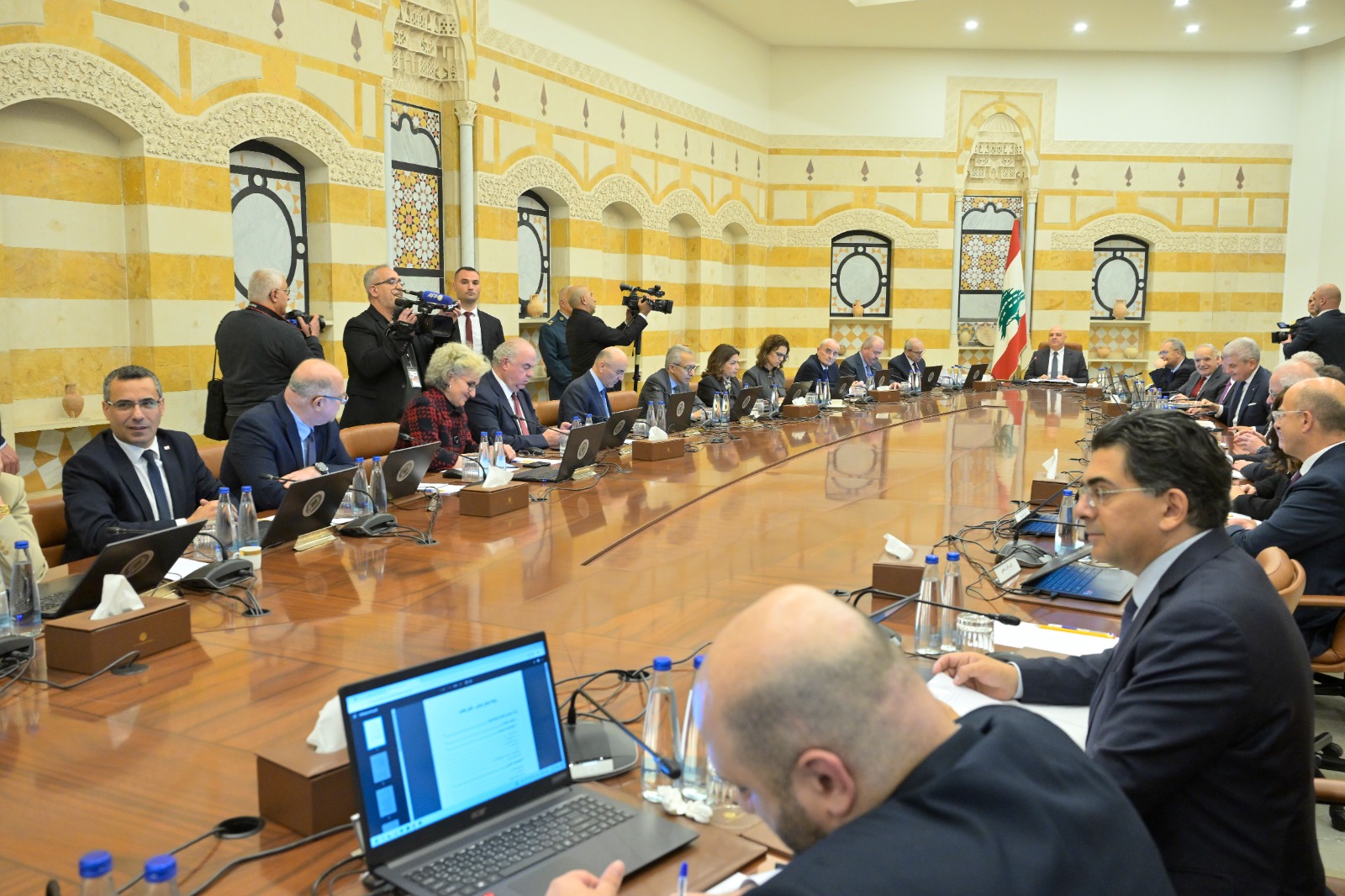 التأم مجلس الوزراء اللبناني في جلسة عادية، اليوم الاثنين في القصر الجمهوري في بعبدا، برئاسة رئيس الجمهورية جوزف عون، وحضور رئيس الحكومة نواف سلام والوزراء.