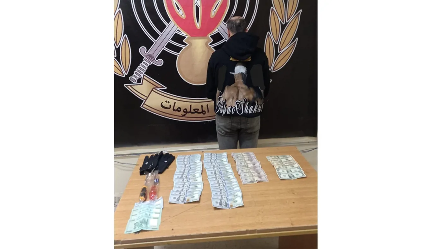 بتاريخ 21-1-2025 وبعد رصدٍ ومراقبة دقيقة، تمكّنت إحدى دوريّات الشّعبة من توقيفه في محلّة حيّ السّلّم، على متن دراجة آليّة لون رمادي، تم ضبطها ومسدّس حربي ومبلغ أربعة آلاف دولار أميركي من المبلغ المسروق.