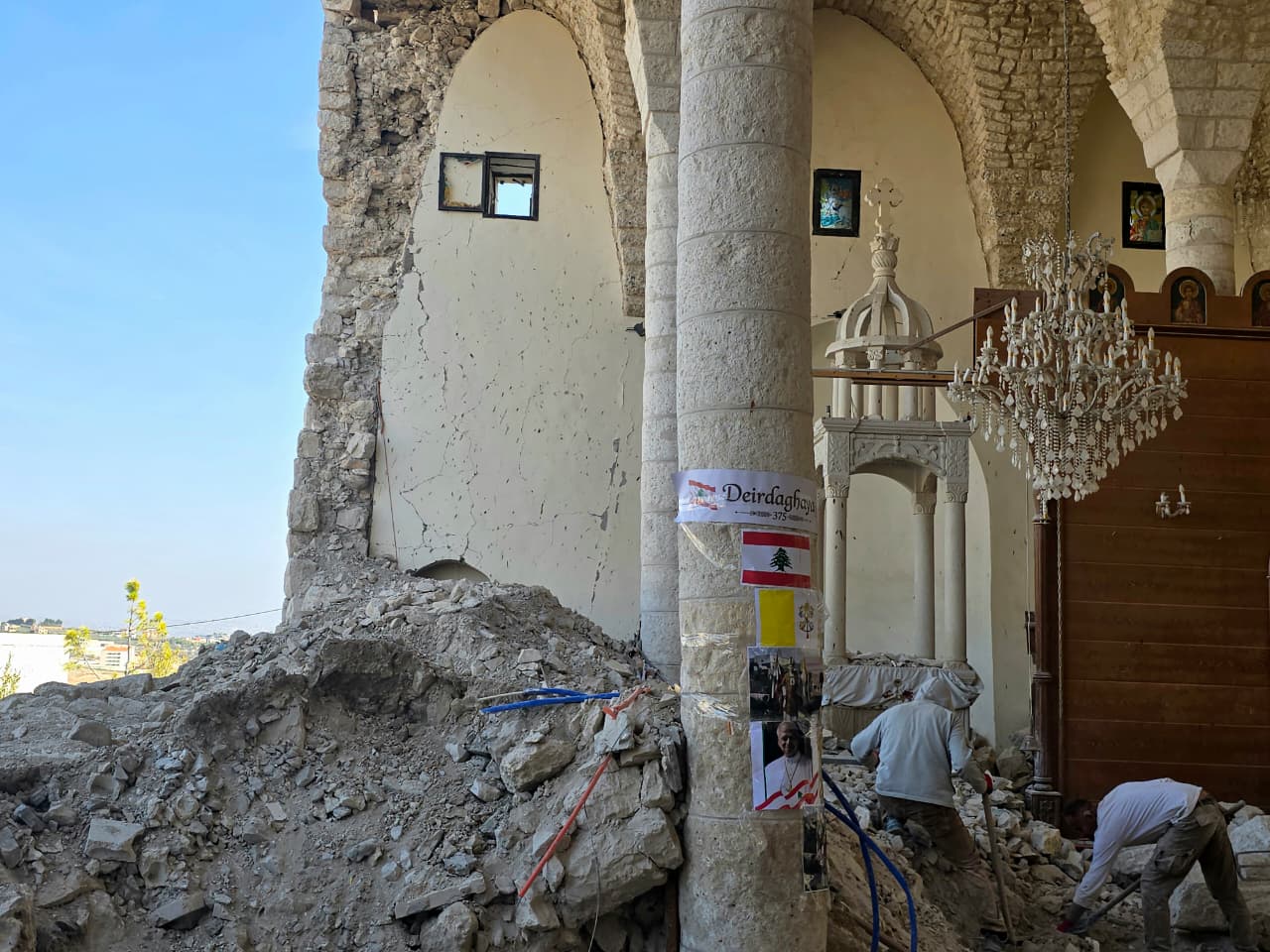 في مناسبة زيارة البابا لاوون الرابع عشر إلى لبنان، بعد يوم غد الأحد، وبمبادرة متواضعة من بعض شباب أبناء بلدة در دغيا، قضاء صور في الجنوب، تم صباح اليوم وضع عدد من صور قداسة البابا واعلام لبنانية وبابوية، وسط ركام وخراب كنيسة مار جاورجيوس في البلدة التي تعرضت قبل عام إلى غارة عنيفة من الطيران الحربي الإسرائيلي، نجم عنها تدمير كامل لمبنى صالون الكنيسة والمؤلف من 4 طبقات وتدمير الواجهة الشمالية للكنيسة، فيما نجم عن غارة ثانية استهدفت مقر للدفاع المدني والهيئات الصحية عند الطرف الجنوبي للبلدة إلى استشهاد 6 عناصر وإحراق عدد من سيارات الإسعاف والدفاع المدني.